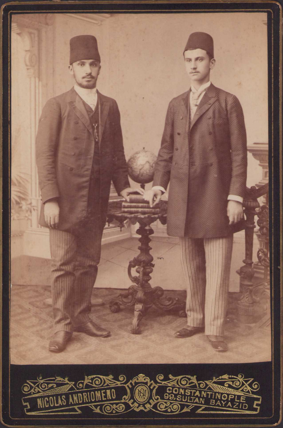 Fesli Osmanlı Beyefendiler, küre ve kitap detaylı, Foto Nicolas Andriomeno, Constantinople