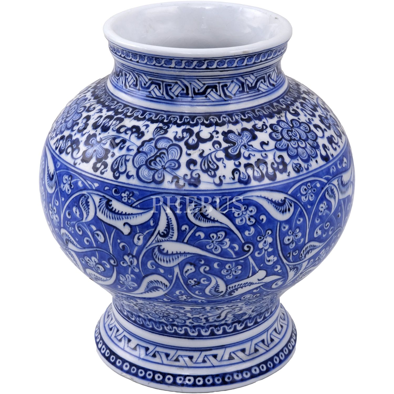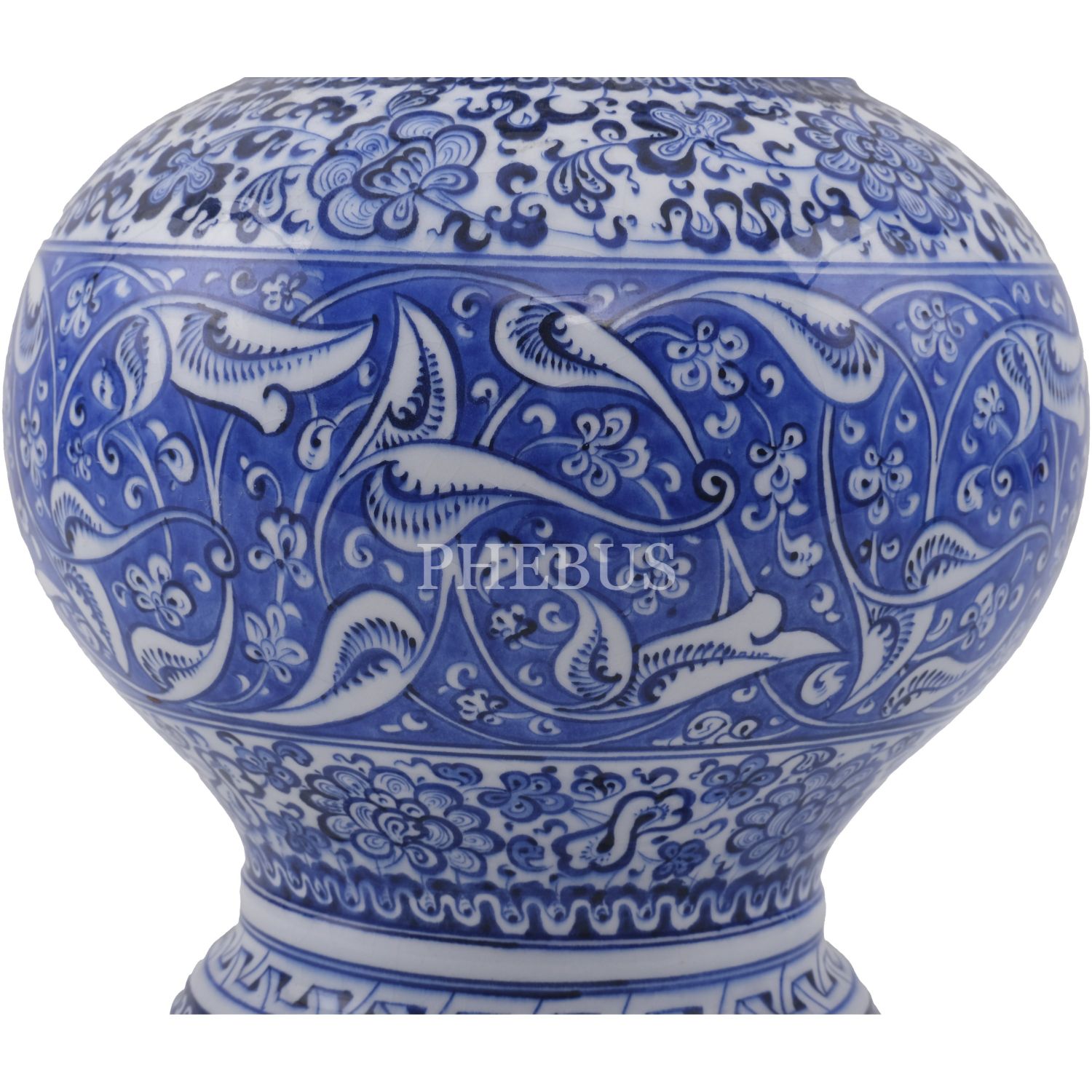İsmail Yiğit imzalı, tabanında "Victoria and Albert Museum" yazılı, geleneksel çini motifleriyle süslenmiş seramik küp, çap 12 cm, yükseklik 24 cm...