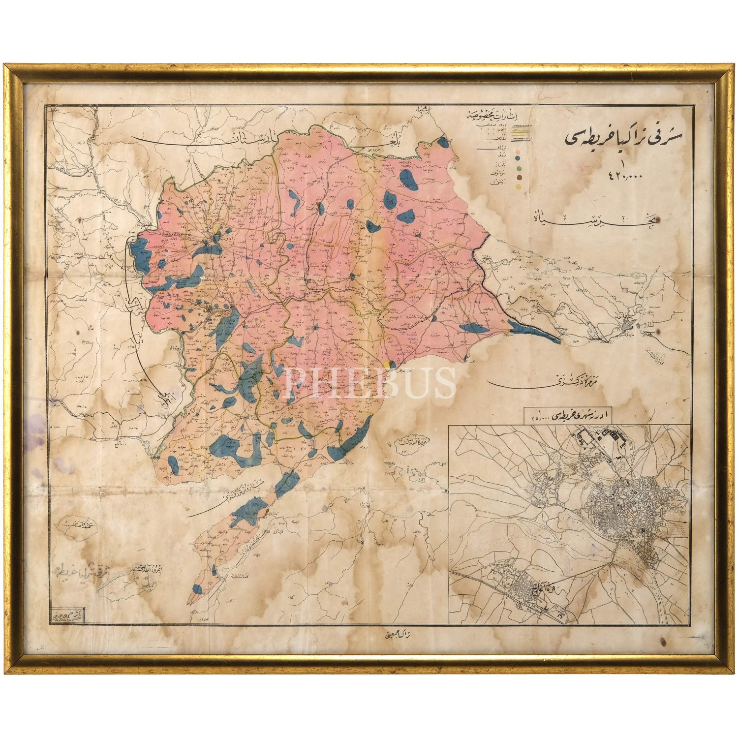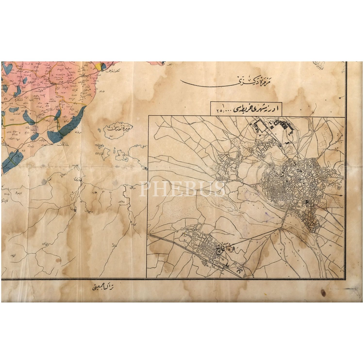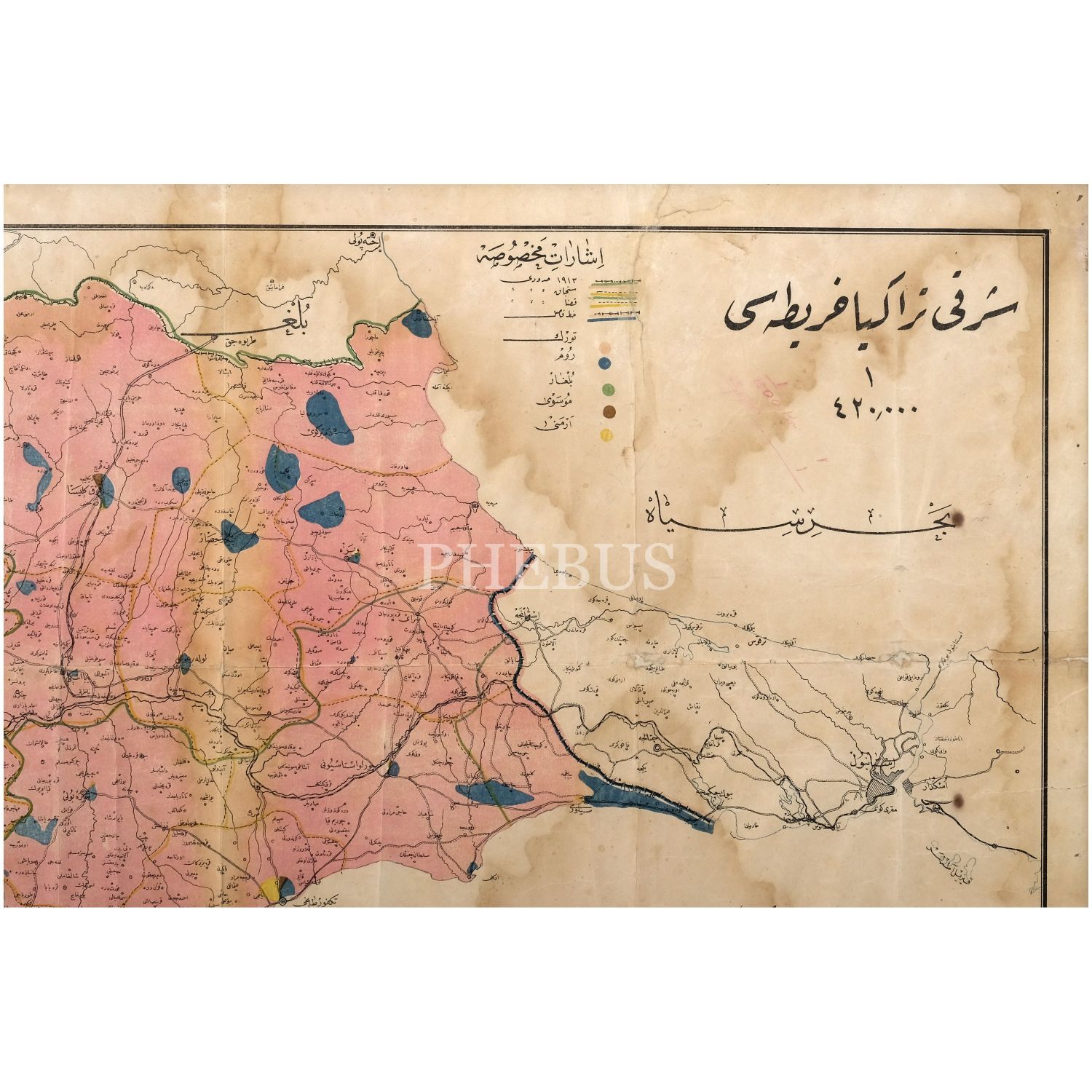 Kemaleddin imzalı, Trakya´nın doğusunun gösterildiği "Şarkî Trakya Haritası" başlıklı Osmanlıca harita, 80x66 cm...