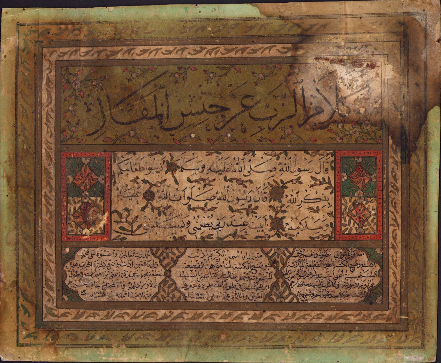 Sülüs Nesih Hat icazeti, Hadis-i Şerif, İcazeti alan: İbrahim Şevki Efendi, İcazeti Verenler: Hafız İbrahim ez-Zühdi, Mehmed Emin Efendi ve Ahmed Aziz talebesi Hafız Hüseyin Hilmi Efendi, 1263 tarihli, tazhipli, haliyle, 22x19,5 cm.