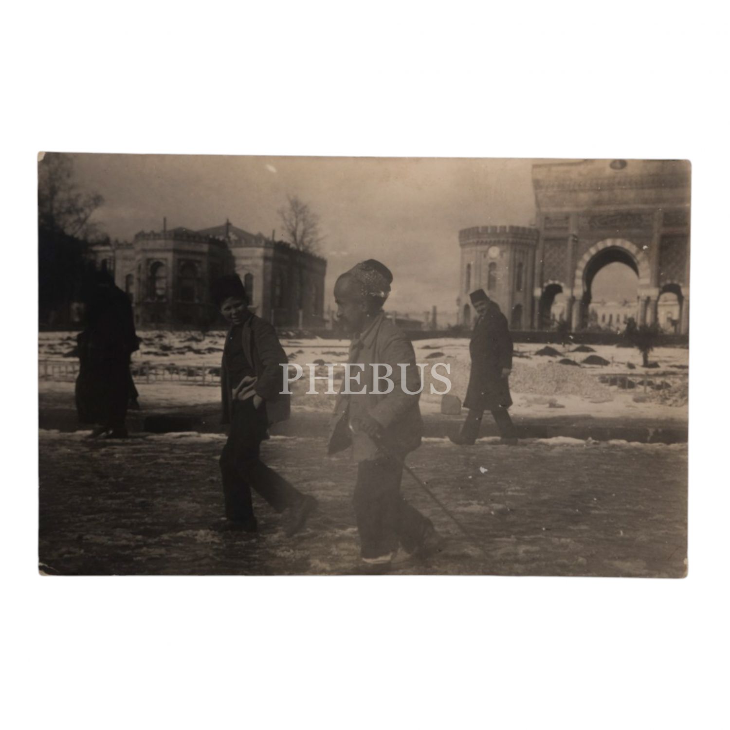 "Pazarola bilmem ne başı!" şeklinde selam verdiği esnafa uğur getirdiğine inanılan Pazarola Hasan Bey´in (1883-1926), "Maşallah" yazılı şapkasıyla Beyazıt Meydanı´nda çekilmiş fotoğrafı, 14x9 cm...