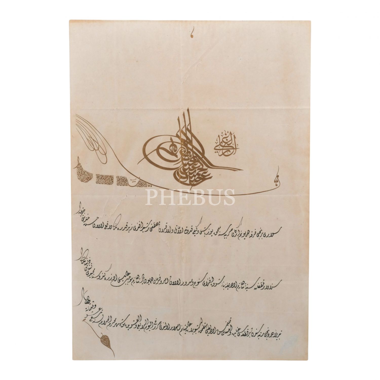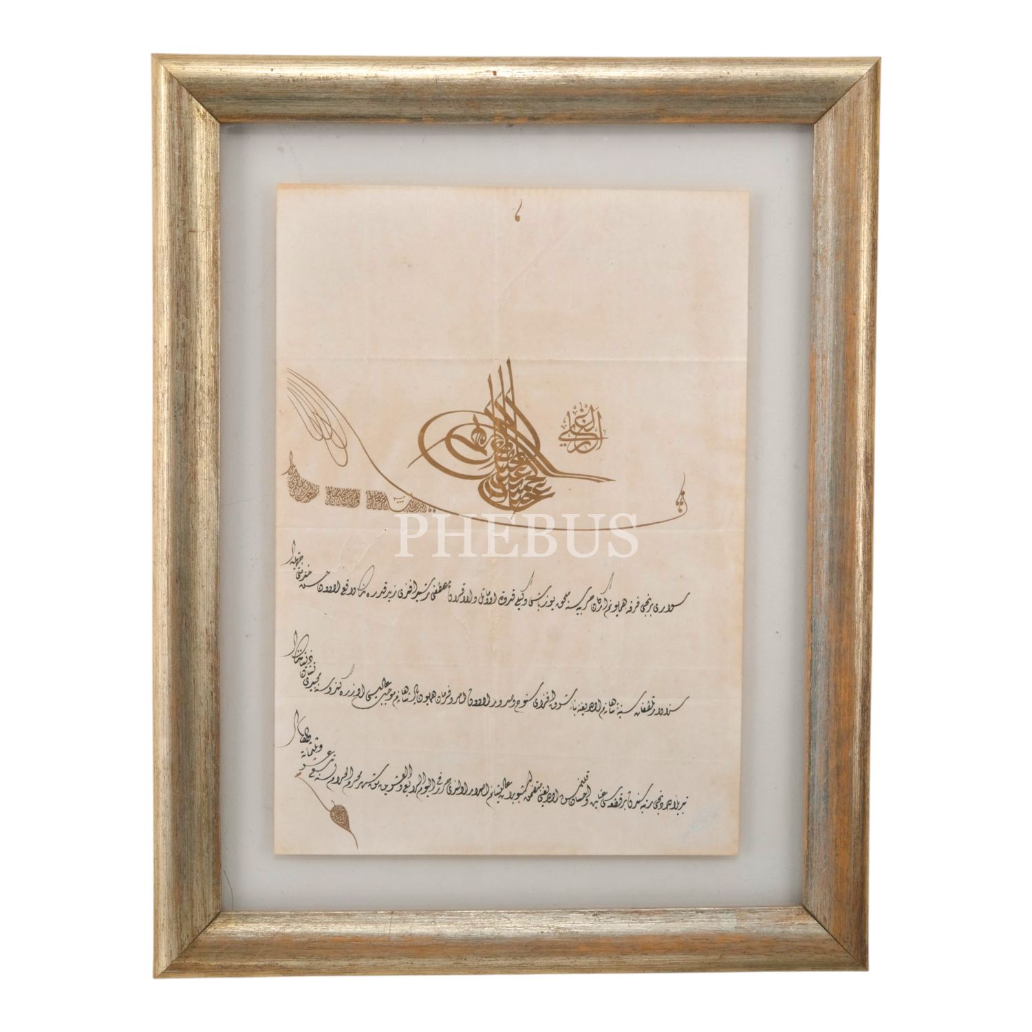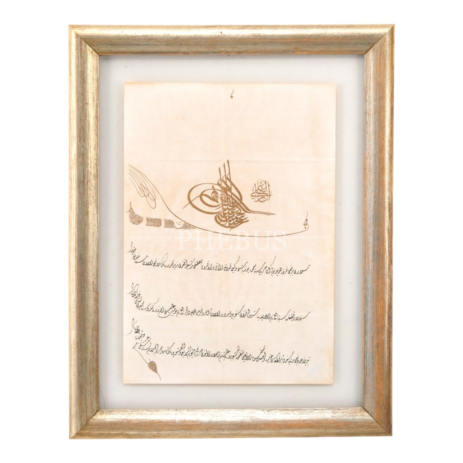Süvari Birinci Fırka Yüzbaşı vekili Mustafa Reşit Efendi´nin, 4. Derece Mecidi Nişanı´nın, Sultan İkinci Abdülhamid tuğralı beratı, 1329, 39x56 cm...