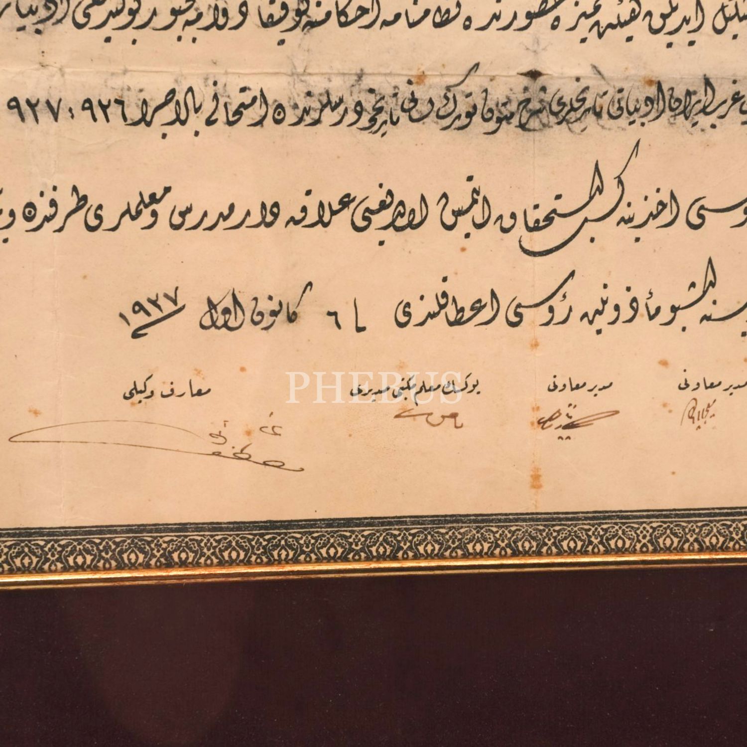 Türkiye Cumhuriyeti Yüksek Muallim Mektebi´nin Edebiyat Zümresi´nden mezun olan Rafia Hanım´ın diploması, 1927, 35x25 cm...