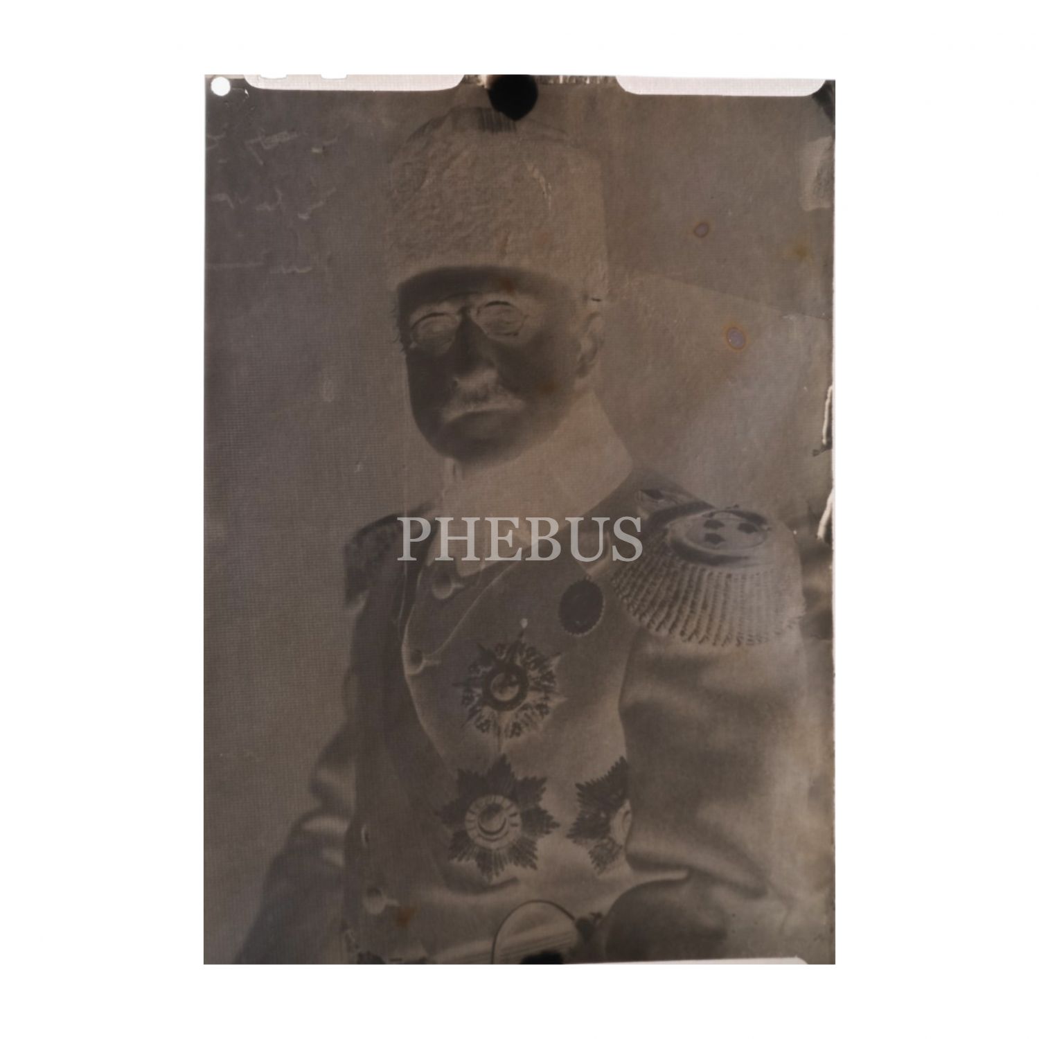 Sultan Abdülaziz´in oğullarından Şehzade Yusuf İzzettin Efendi´nin, üniforması ve madalyalarıyla görüldüğü negatif baskı fotoğrafı, 9x12 cm...