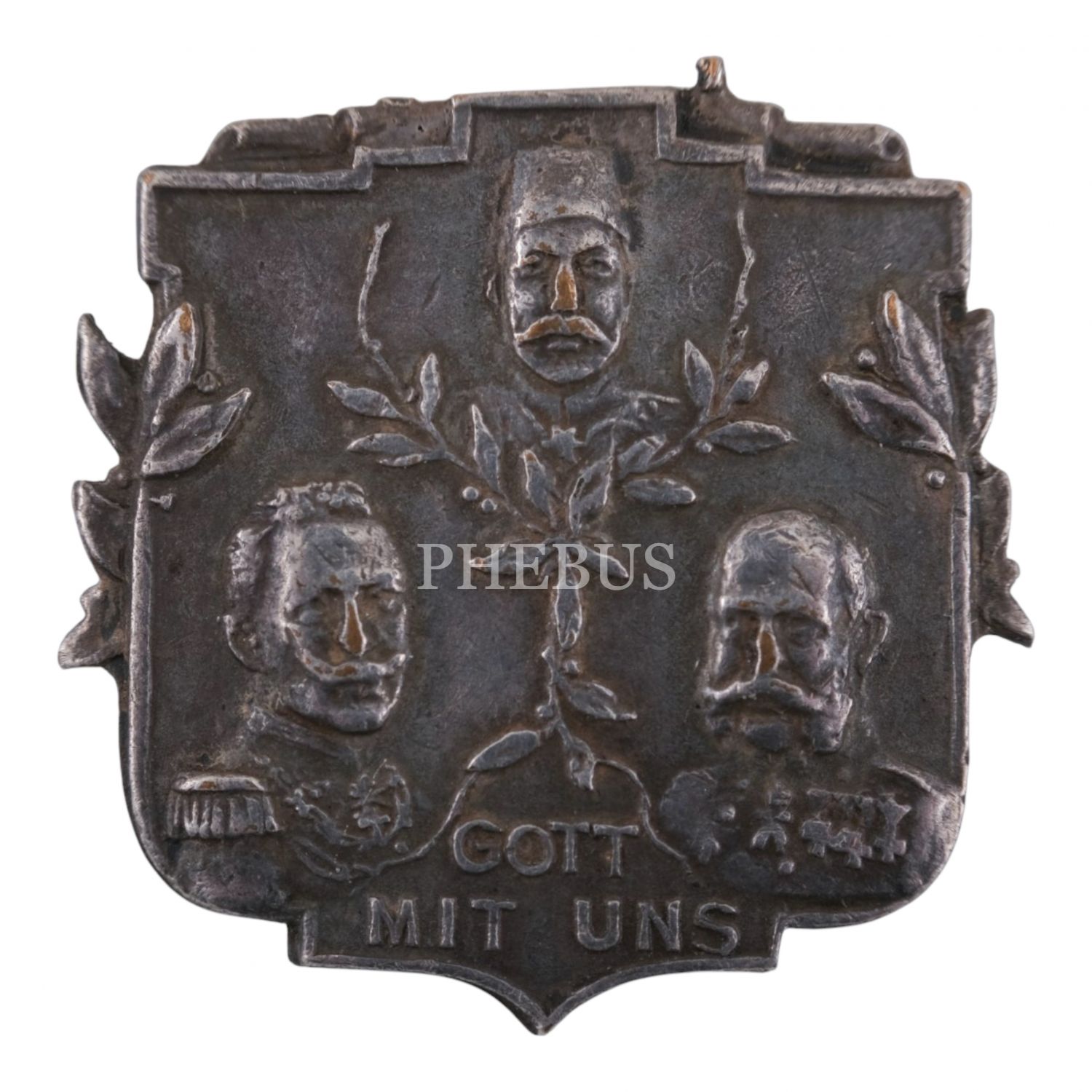 Üçlü İttifak konulu rozet, Mehmed Reşad, Kayzer Wilhelm ve Franz Joseph görselli, "Gott Mit Uns" yazılı, 2,5x2 cm...