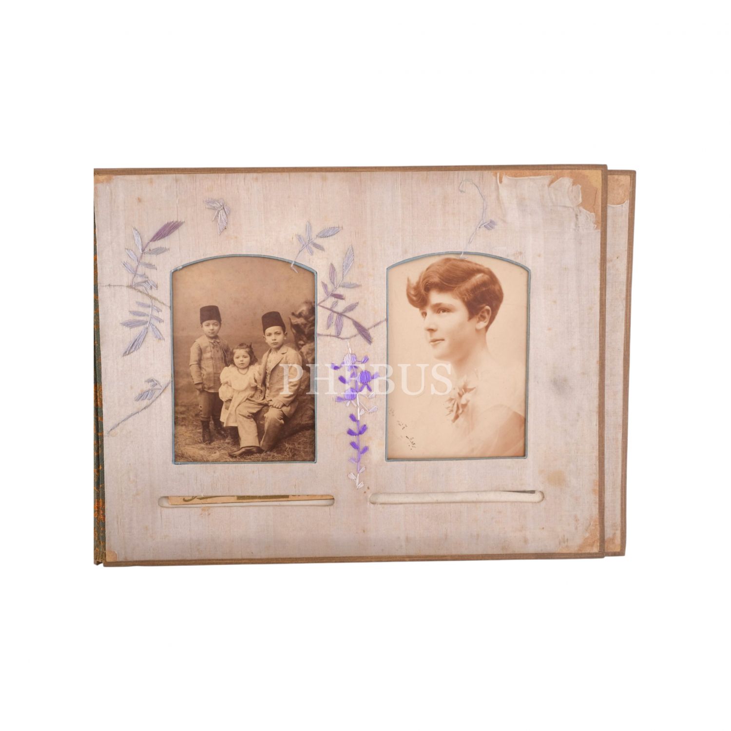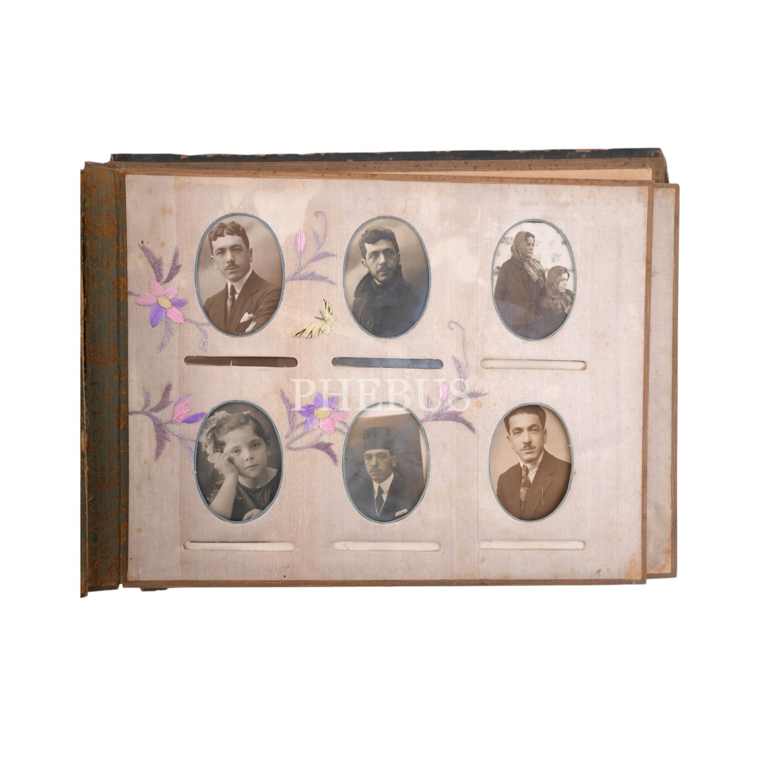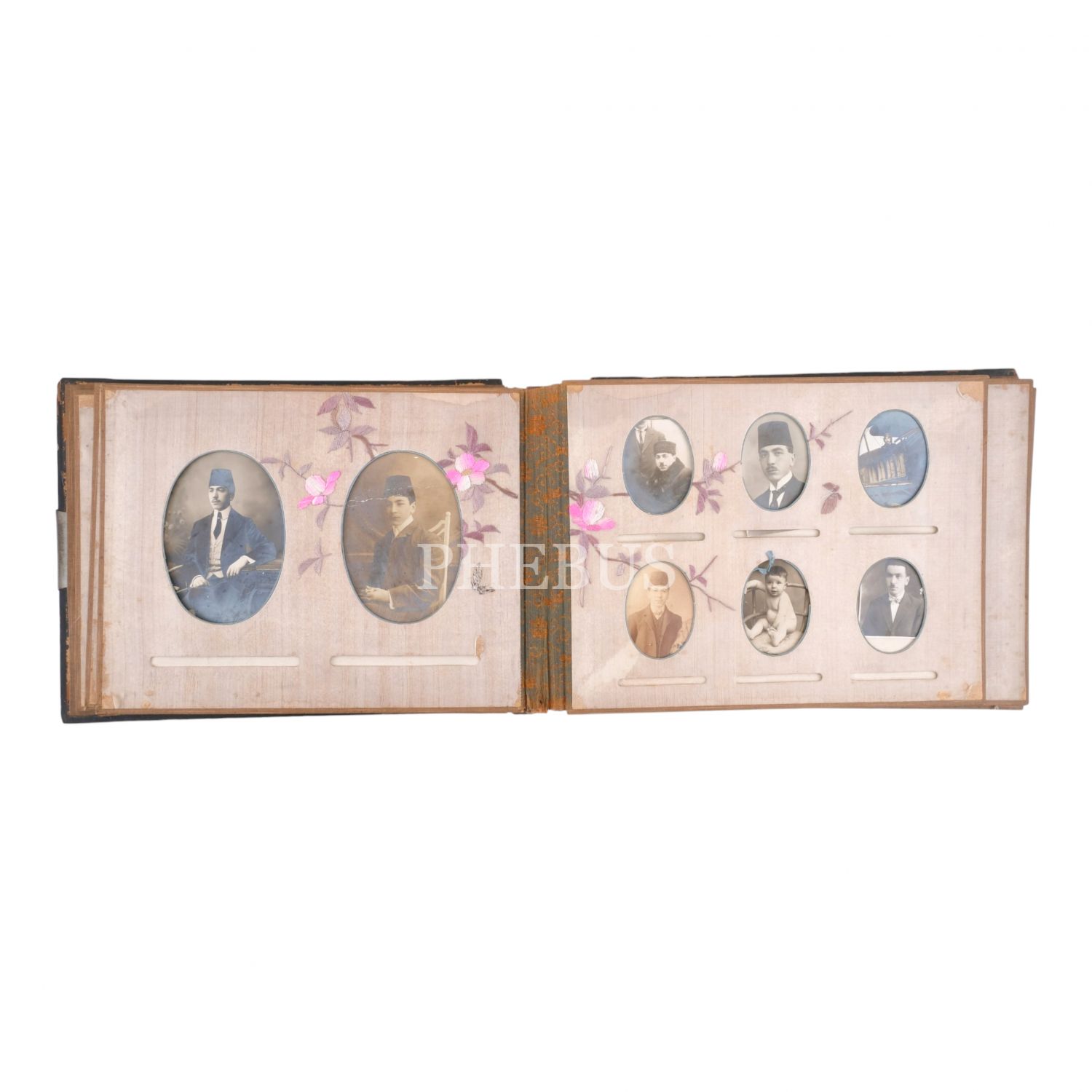 Aralarında tayyareci ve askerlerin de yer aldığı bir Osmanlı ailesinin 49 adet fotoğrafının yer aldığı, kapağı sedef işçilikli bir şahin motifli, iç sayfaları dokuma çiçek motifleriyle süslenmiş görkemli bir albümde yer alan fotoğrafları, 36x27 cm...