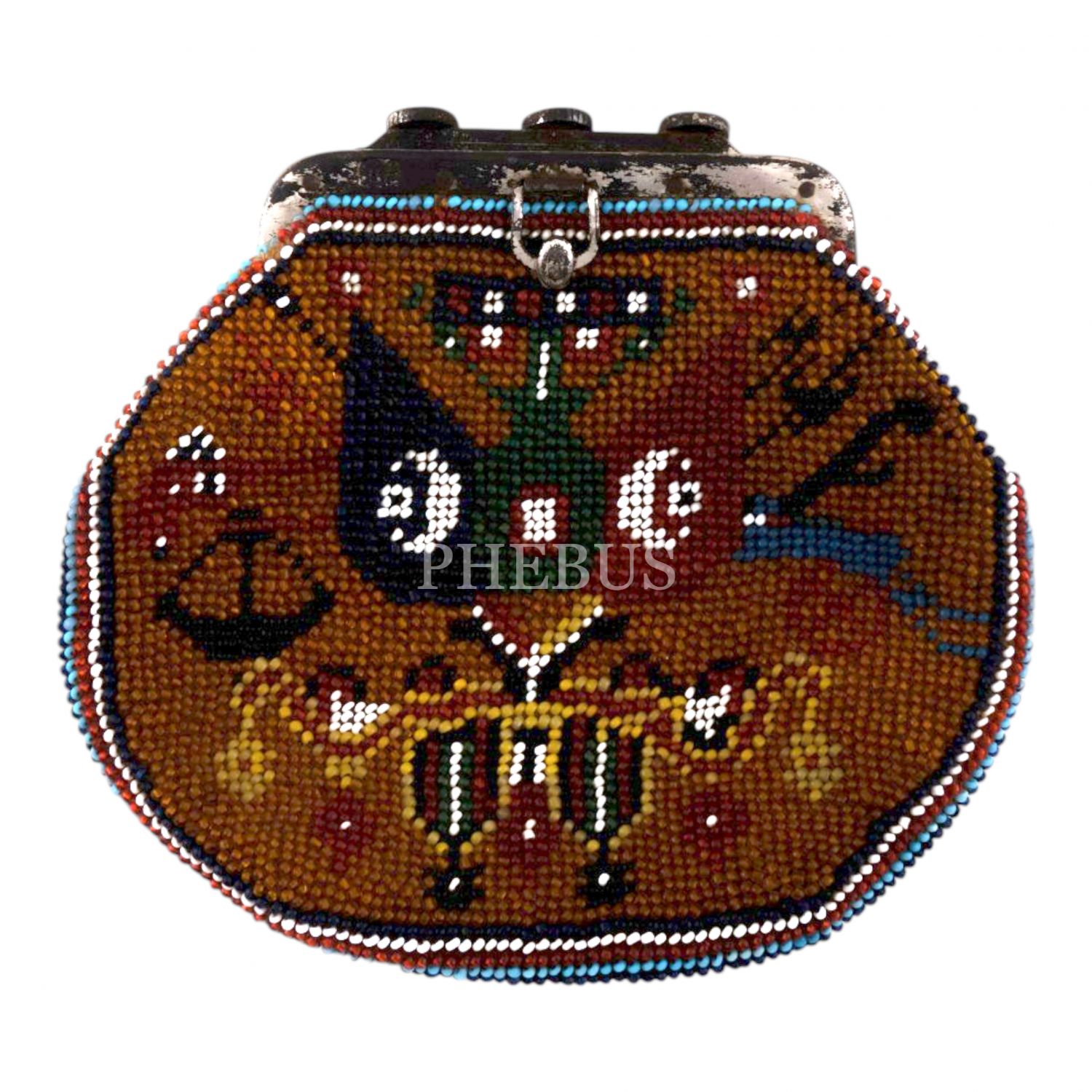 Osmanlı döneminden cezaevi işi, boncuk örme yöntemiyle Osmanlı Devlet arması işlenmiş cüzdan, 13x12 cm...