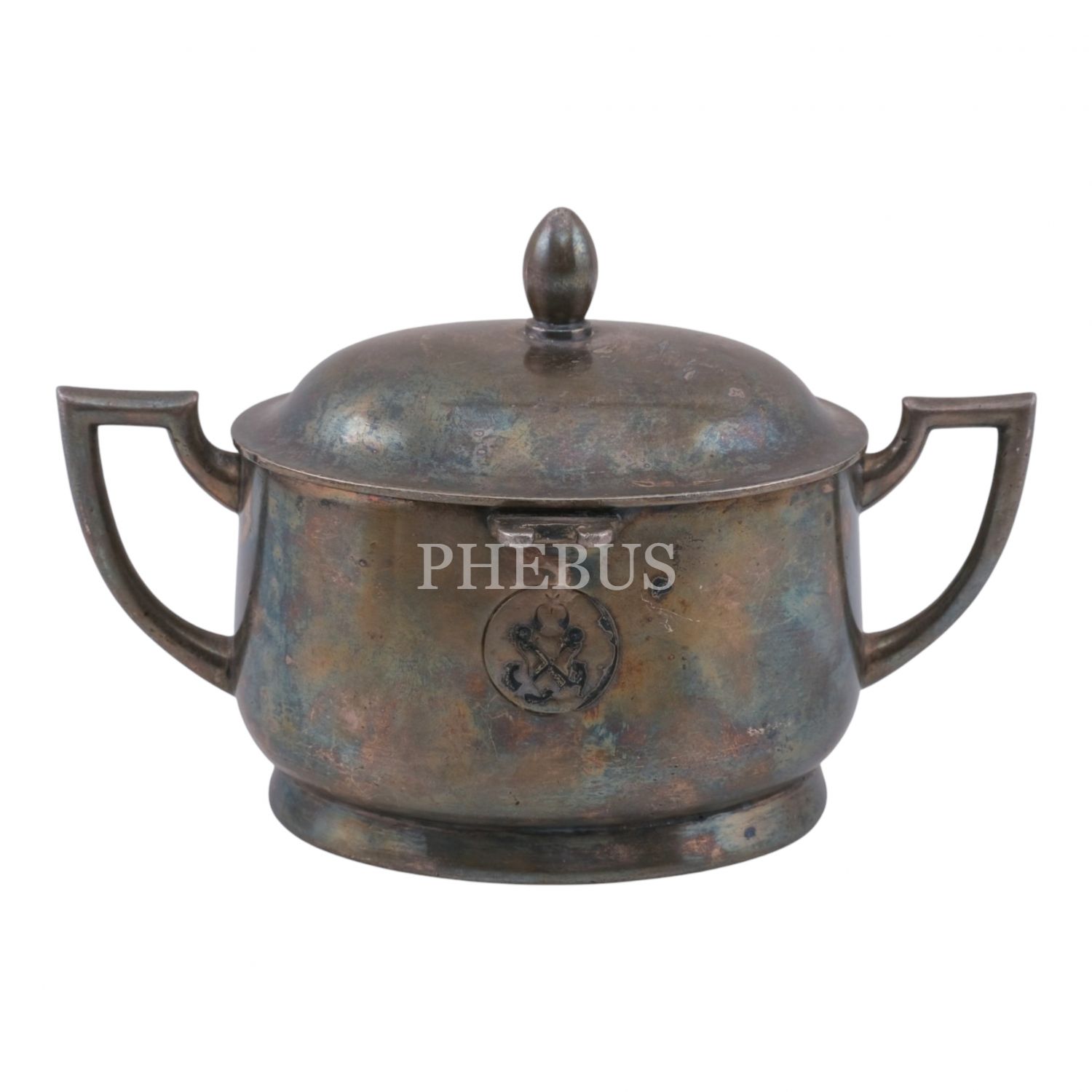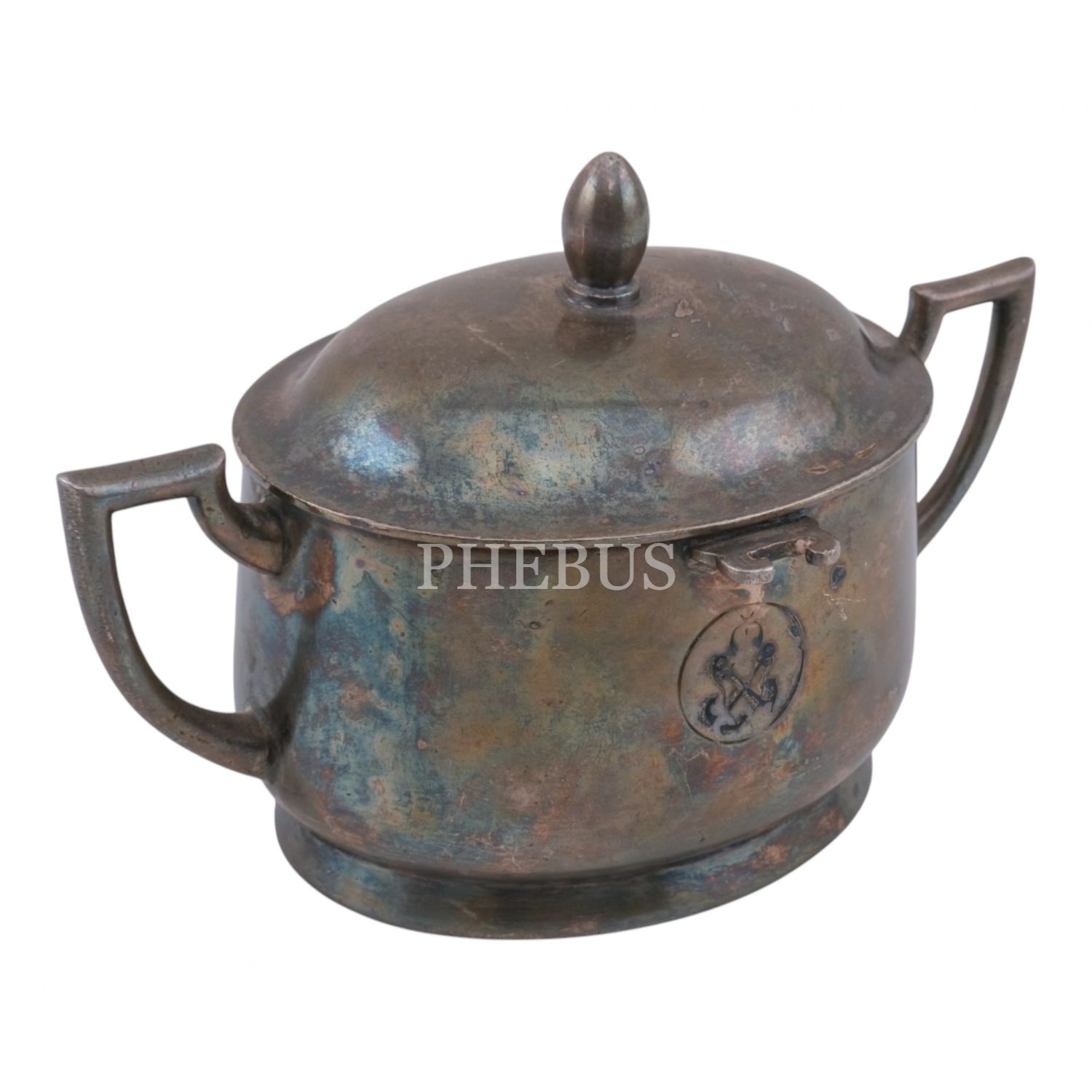 Her birinin gövdesinde Şehir Hatları logosunun bulunduğu gümüş kaplama şekerlik ve pot lotu (3 parça), 14x12x8 cm - 14x10x8,5 cm - 14,5x10,5x5,5 cm...