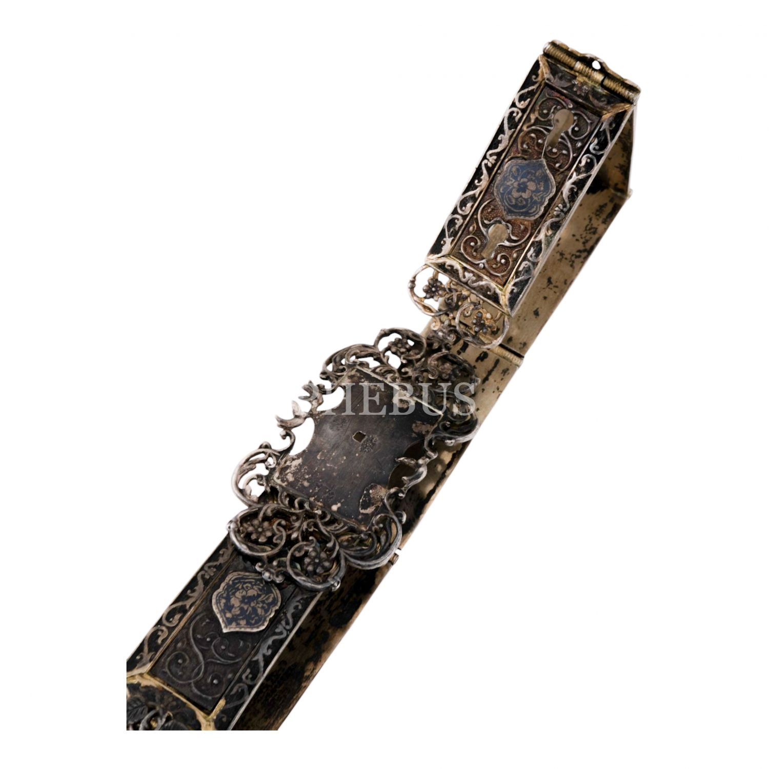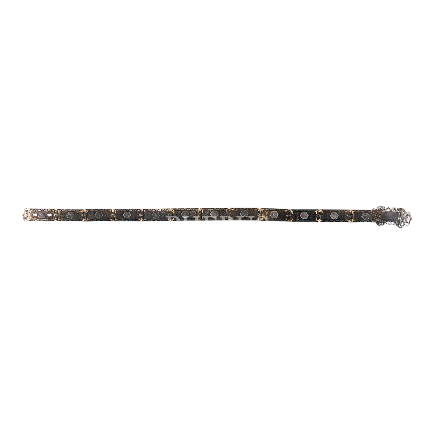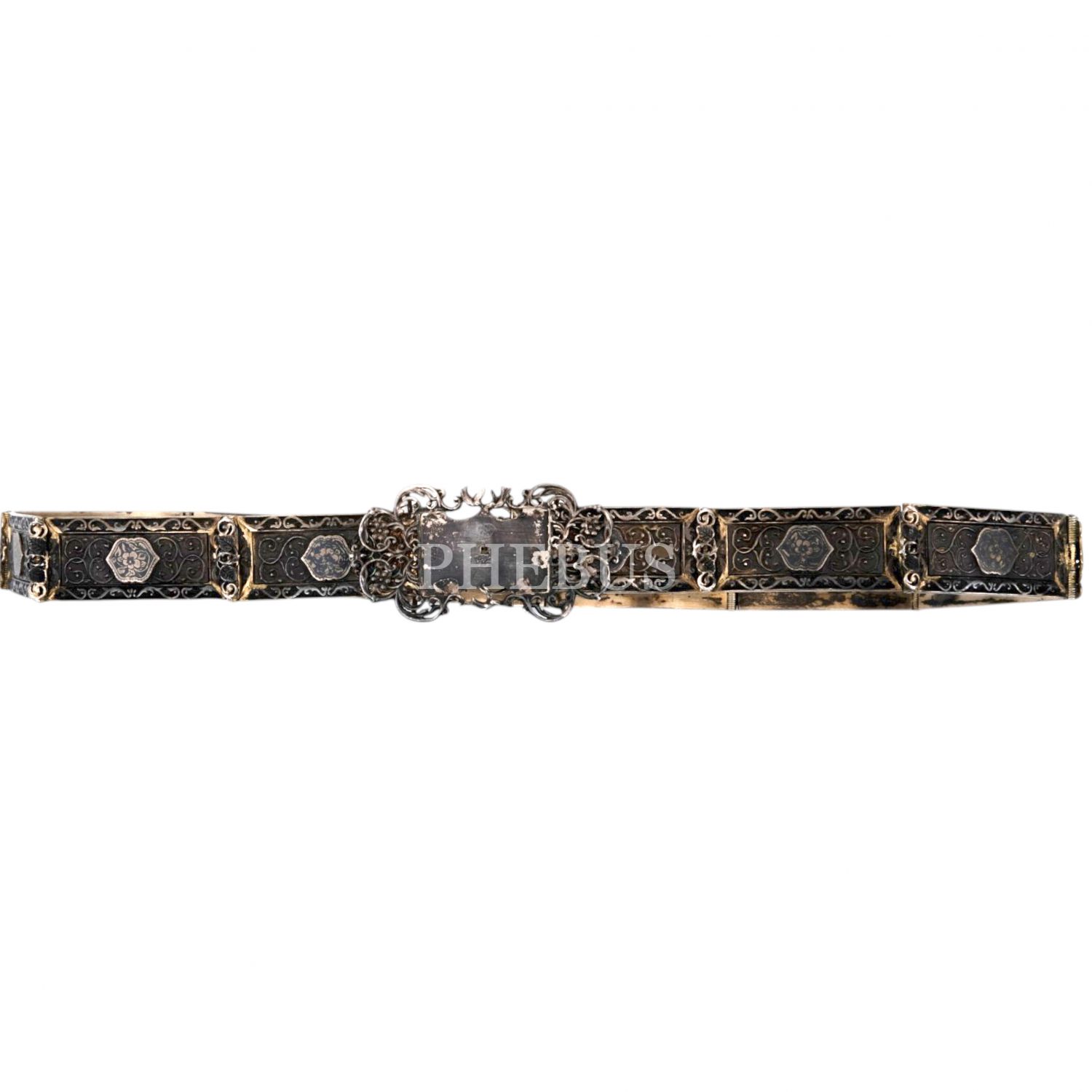 Kalem işçiliğiyle floral desenler işlenmiş, Osmanlıca ve Ermenice "Van" damgalı gümüş kemer, 80x4 cm, 328.9 g...