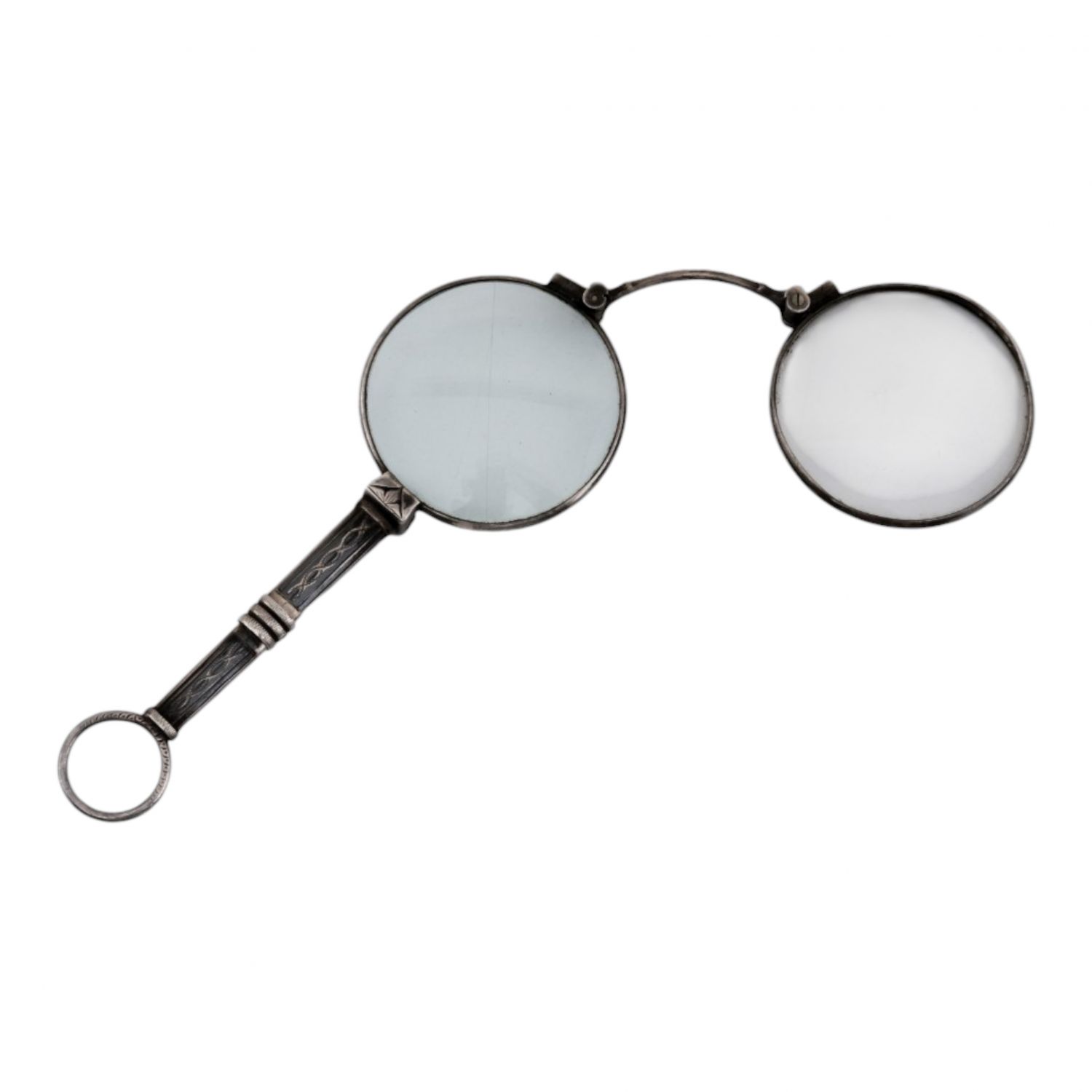 Gümüş, Art Nouveau "Lorgnette" gözlük, mekanik, (kapalı halde) 10,5x4,5 cm, 23.5 g...