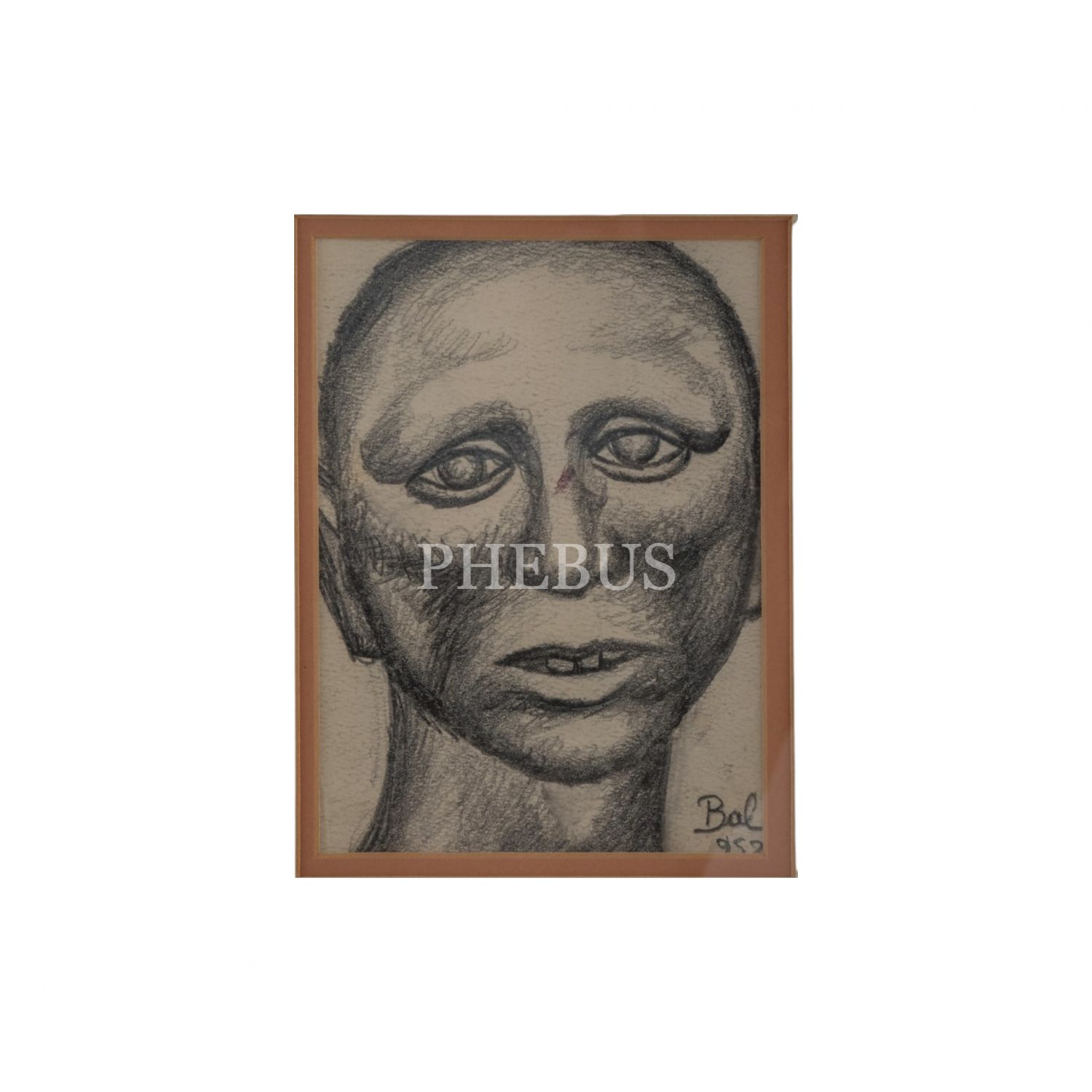 İbrahim Balaban imzalı portre resmi, 1952 tarihli, kâğıt üzerine kara kalem, resim 10x14 cm, çerçeve 30x34 cm...