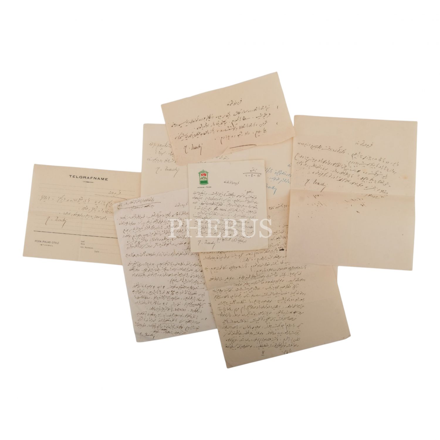 Cumhuriyet gazetesinin kurucusu Yunus Nadi´nin, gazetenin Yazı İşleri Müdürü Feridun Osman Menteşeoğlu´na hitaben gönderdiği, el yazısıyla kaleme alınmış ve her biri ıslak imzasını taşıyan 8 adet mektubu, 24x29 cm...