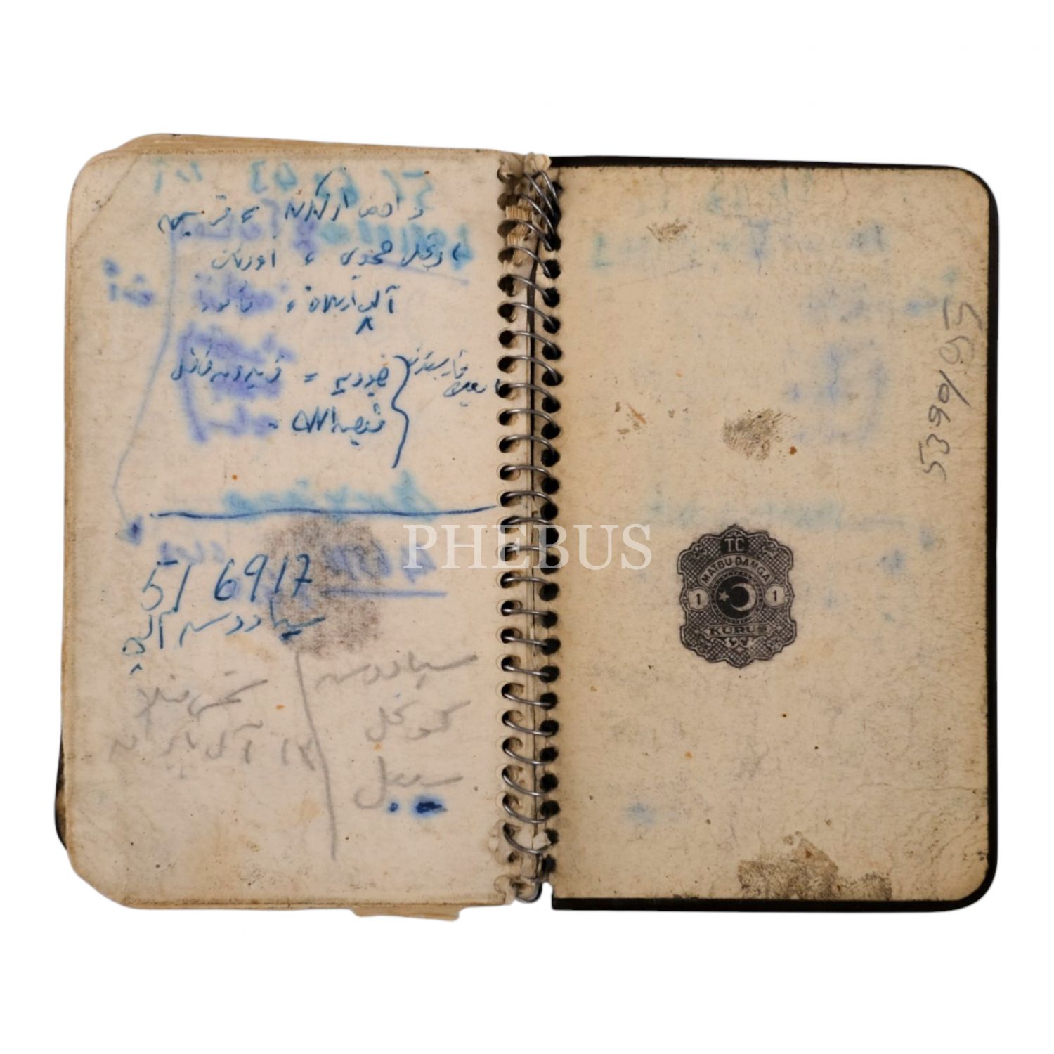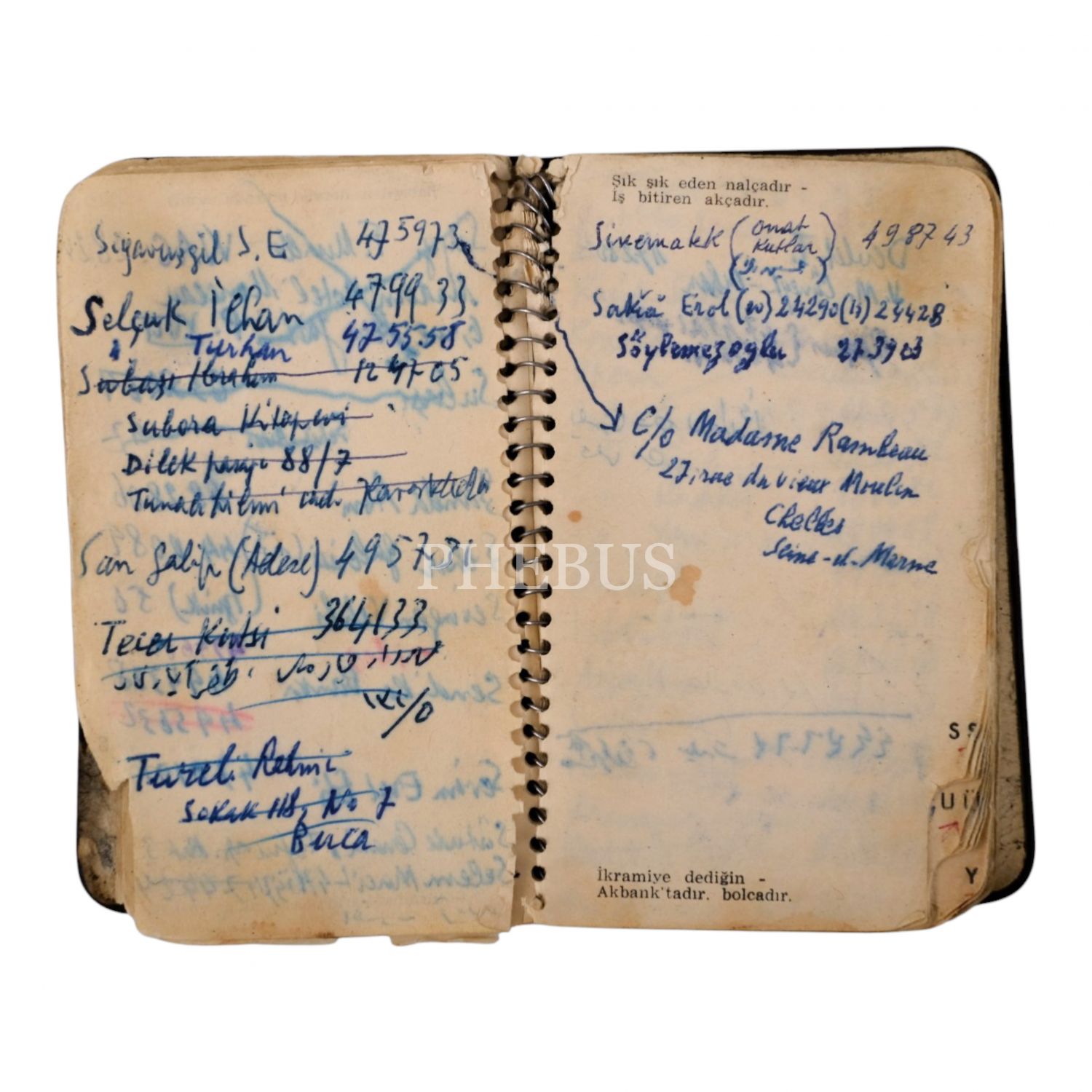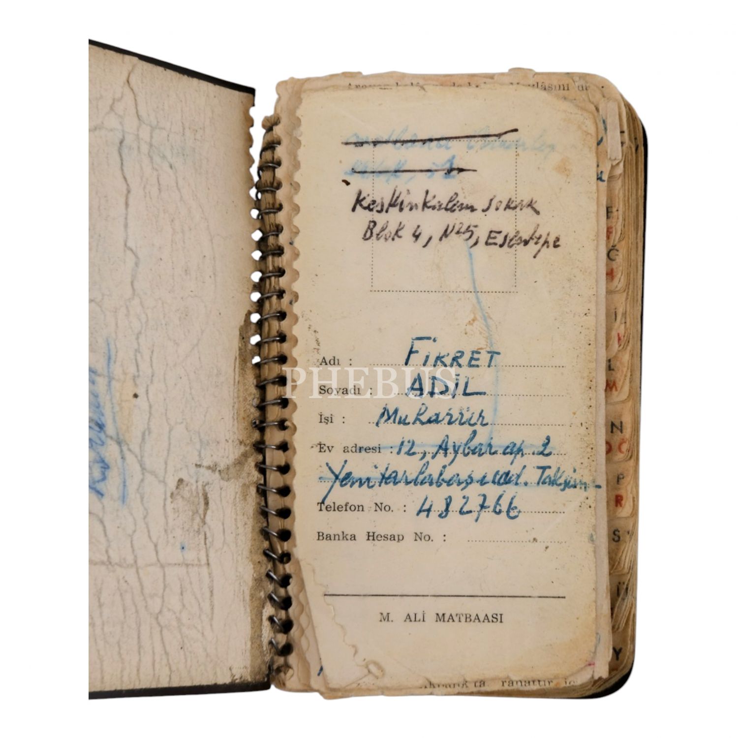 Fikret Adil tarafından tutulmuş, meslektaşları başta olmak üzere devrin tanınmış simalarının birçoğunun telefon numarasını ihtiva eden telefon defteri, 7x11 cm...