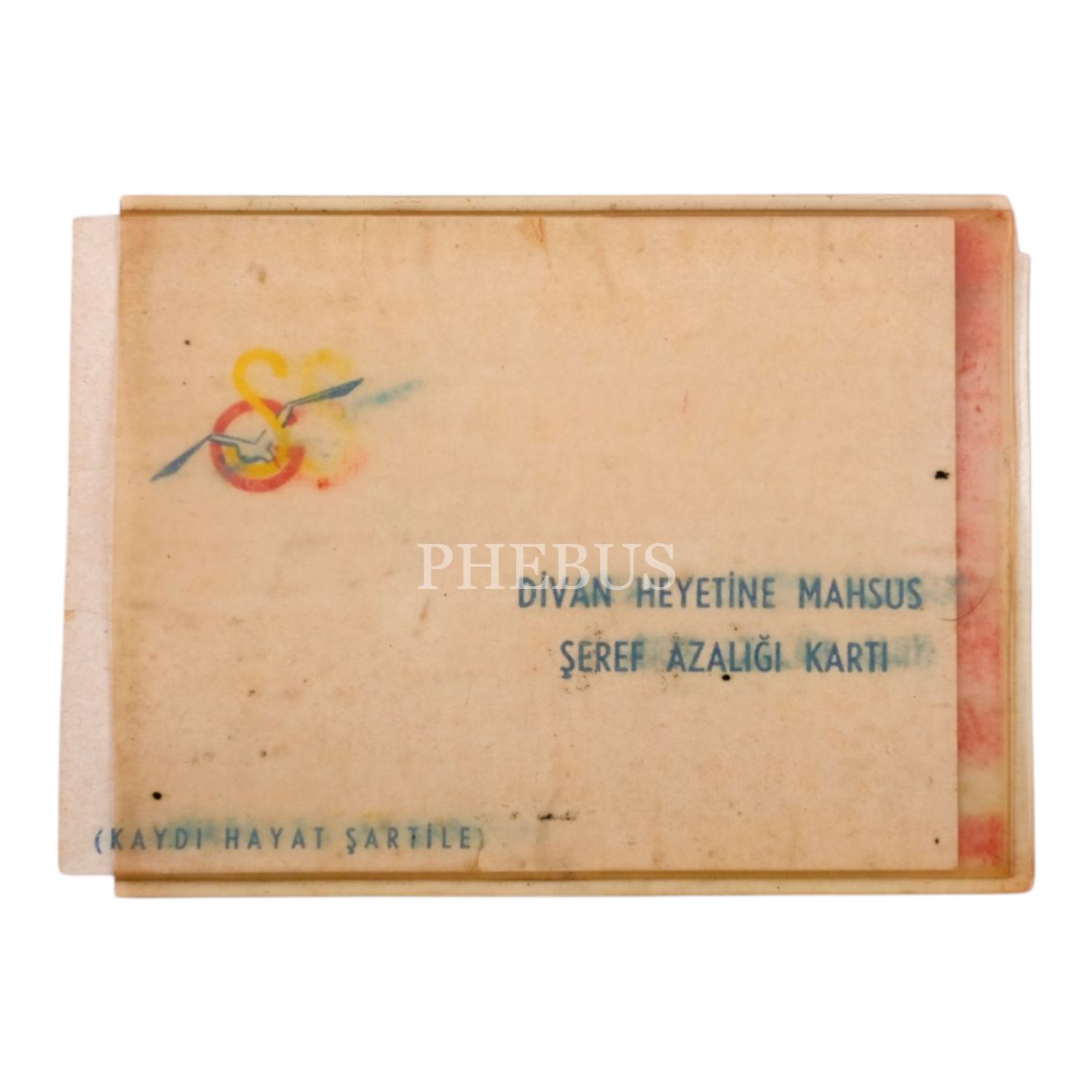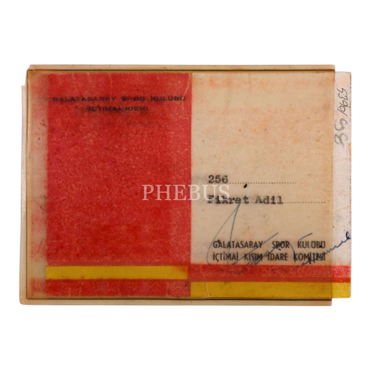 Fikret Adil´e ait, Galatasaray Spor Kulübü İçtimai Kısmı "Divan Heyetine Mahsus Şeref Azalığı Kartı", 9,5x7 cm...