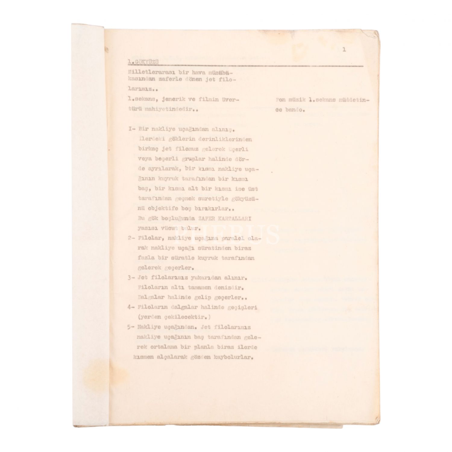 1975 yapımı "Zafer Kartalları" filminin (Seyfi Havaeri) senaryosu, 71 sayfa, 23x30 cm...