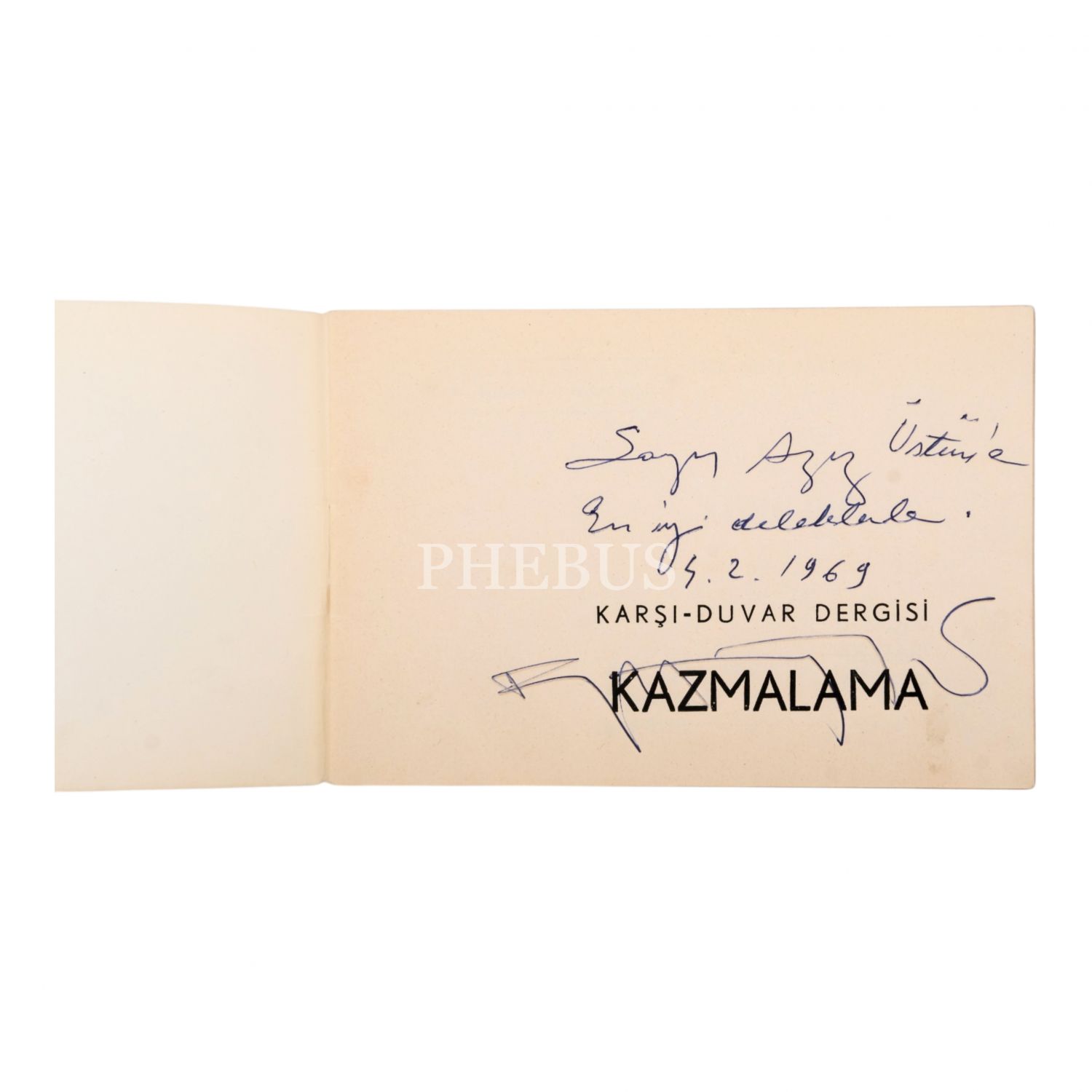 "Sayın Aziz Üstün´e en iyi dileklerle." ithafıyla, 4 Şubat 1969 tarihinde imzalanmıştır. Kapak: Said Maden