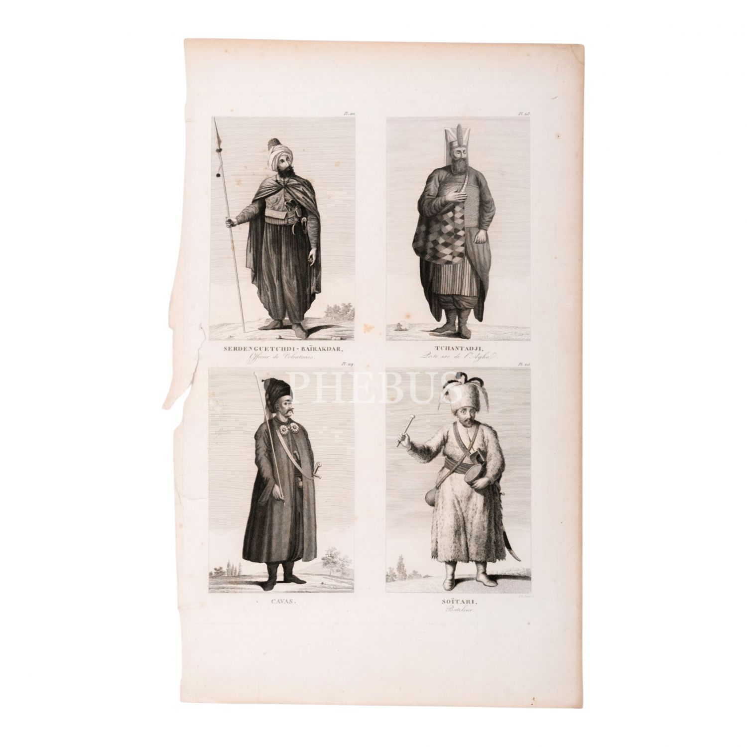 İsveç hizmetinde görev yapan Ermeni asıllı oryantalist Ignatius Mouradgea d´Ohsson´un eserinden (1790), Osmanlı kıyafetlerini gösteren dörtlü gravür sayfası, 32x51 cm...