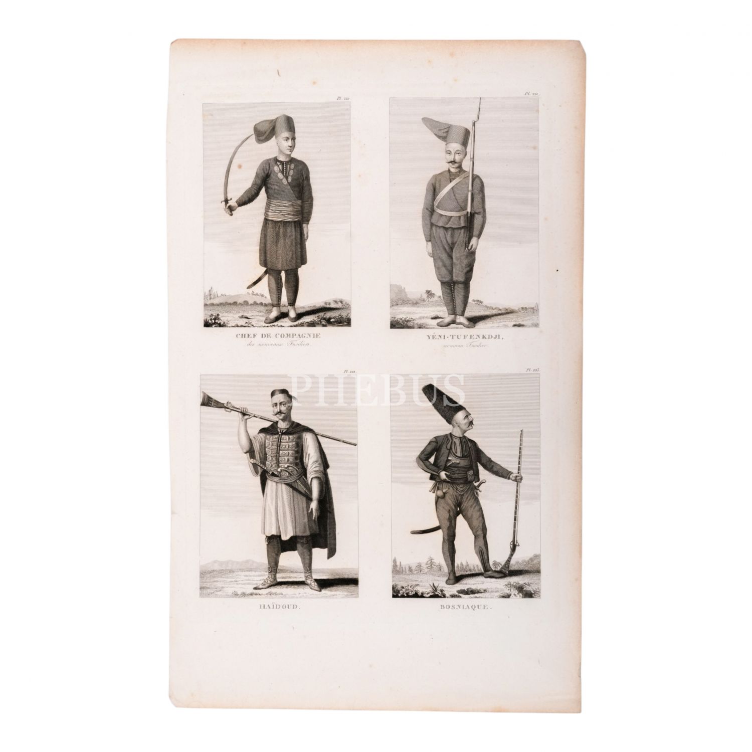 İsveç hizmetinde görev yapan Ermeni asıllı oryantalist Ignatius Mouradgea d´Ohsson´un eserinden (1790), Osmanlı kıyafetlerini gösteren dörtlü gravür sayfası, 32x51 cm...