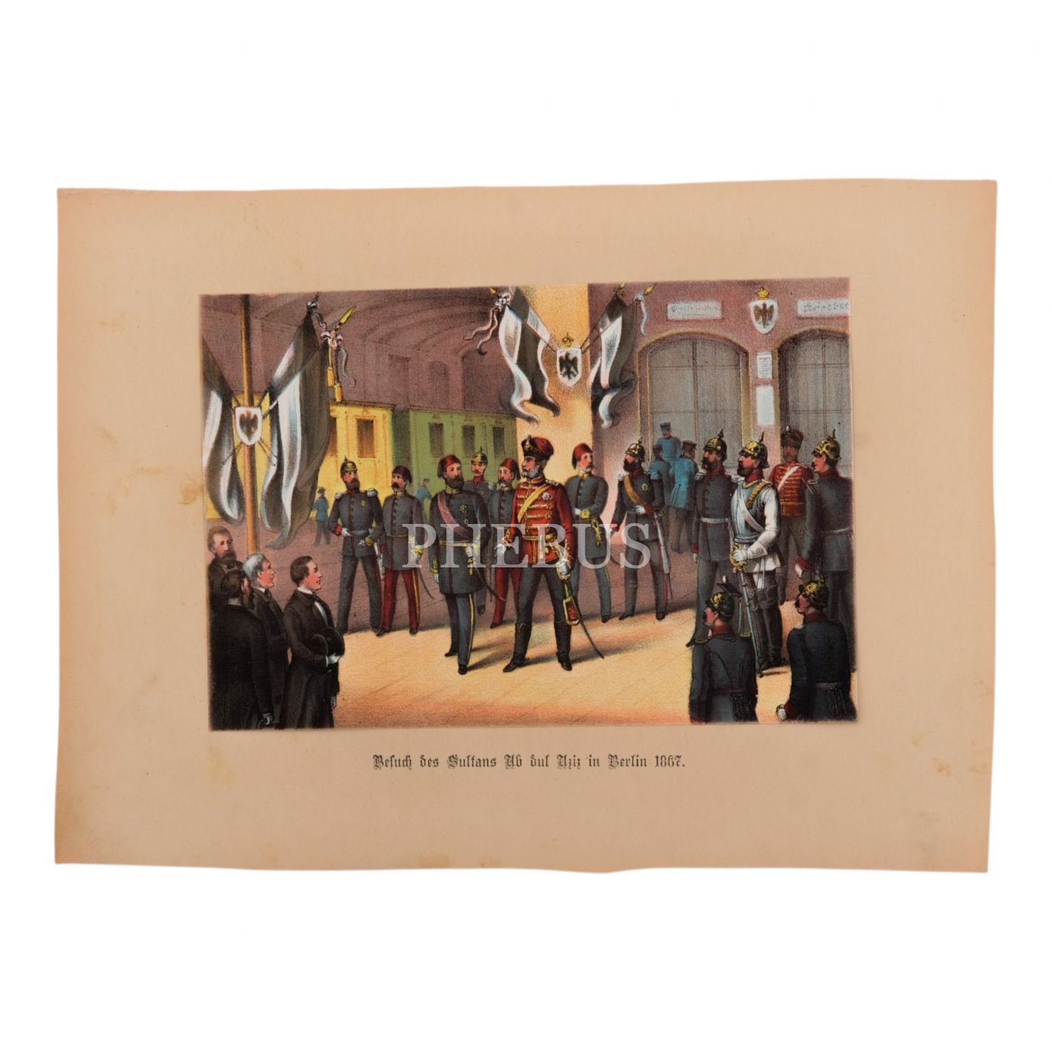 Sultan Abdülaziz´in Berlin ziyareti (1867) konulu taş baskı gravür, 28,5x20,5 cm...