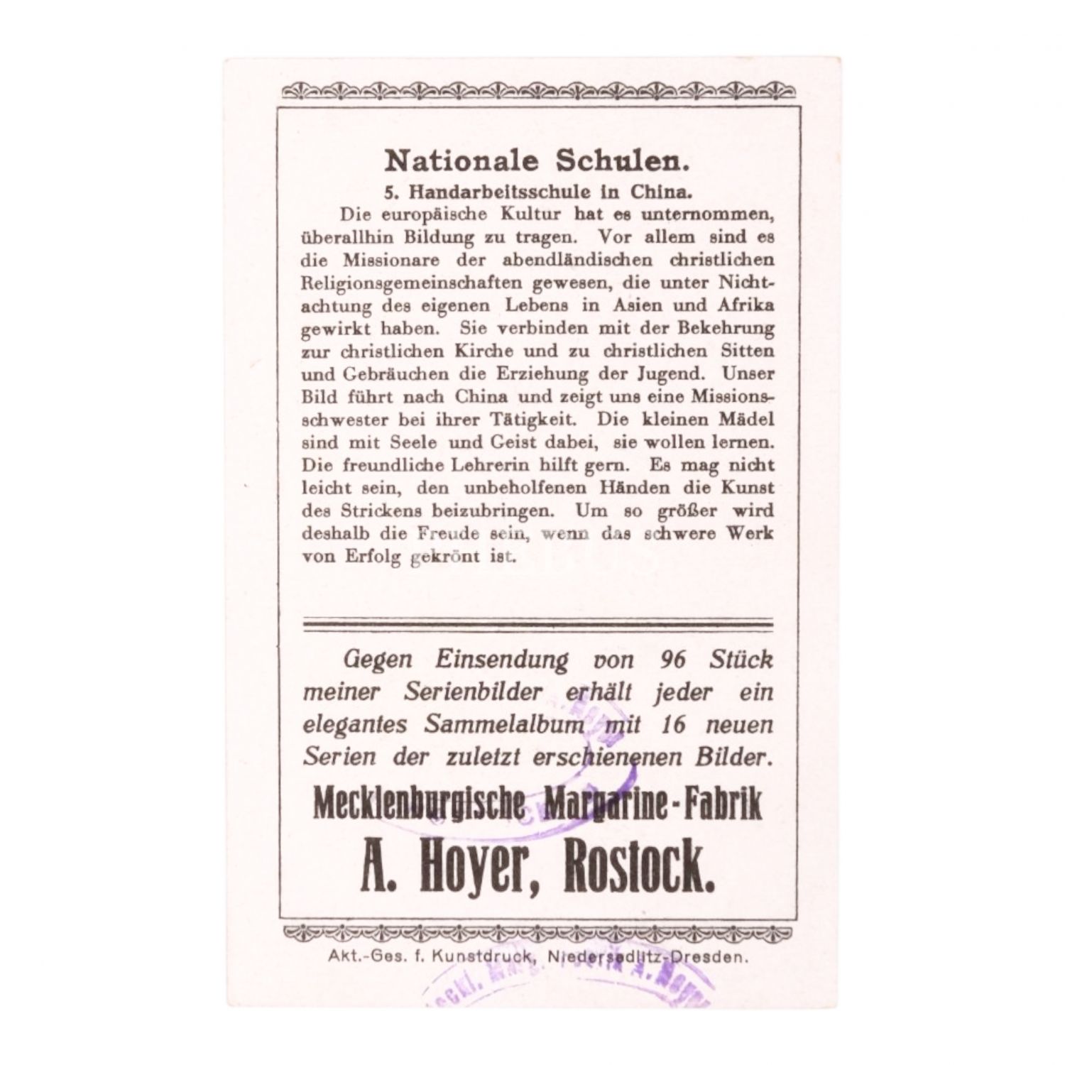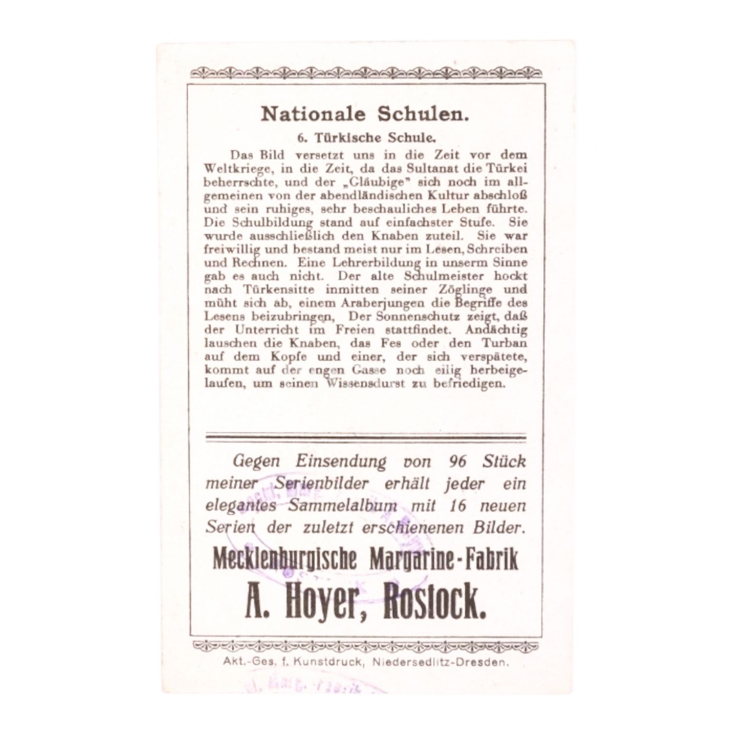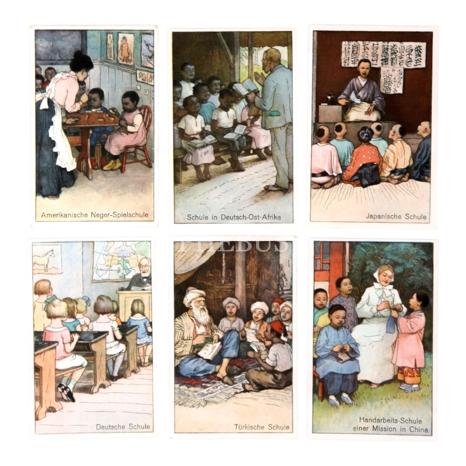 A. Hoyer´in dünyadaki okullar konulu çikolata kartı serisinden, Türkiye´den bir medresenin de yer aldığı 6 adet kart, 7x11 cm...