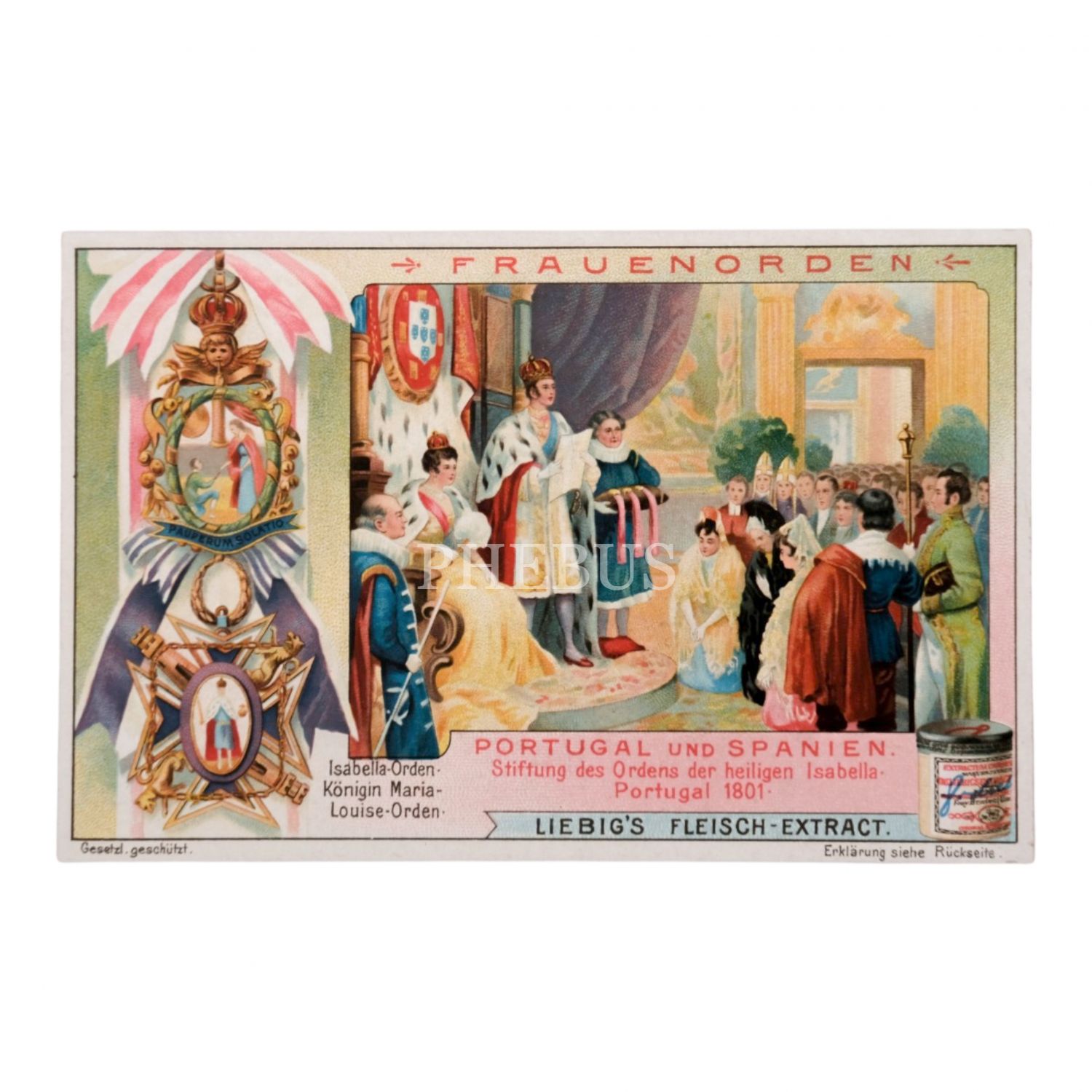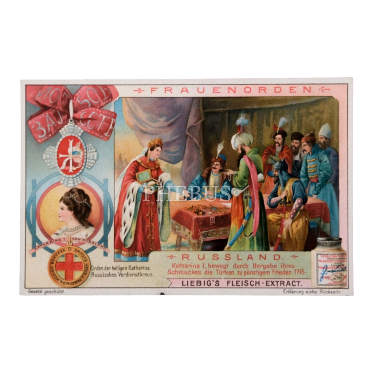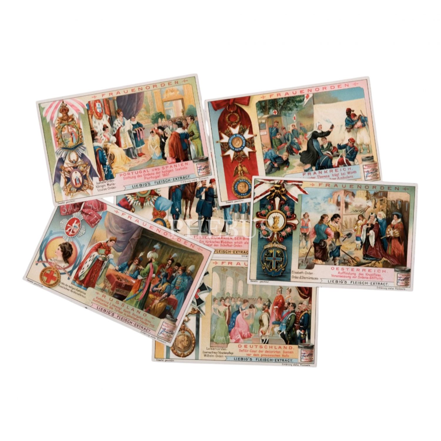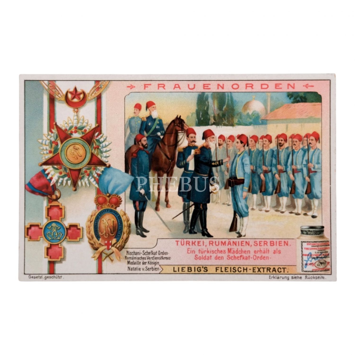 Liebig´in devlet nişanları konulu çikolata kartı serisinden, Türkiye´den Şefkat Nişanı´nın yer aldığı 6 adet kart, 11x7,5 cm...