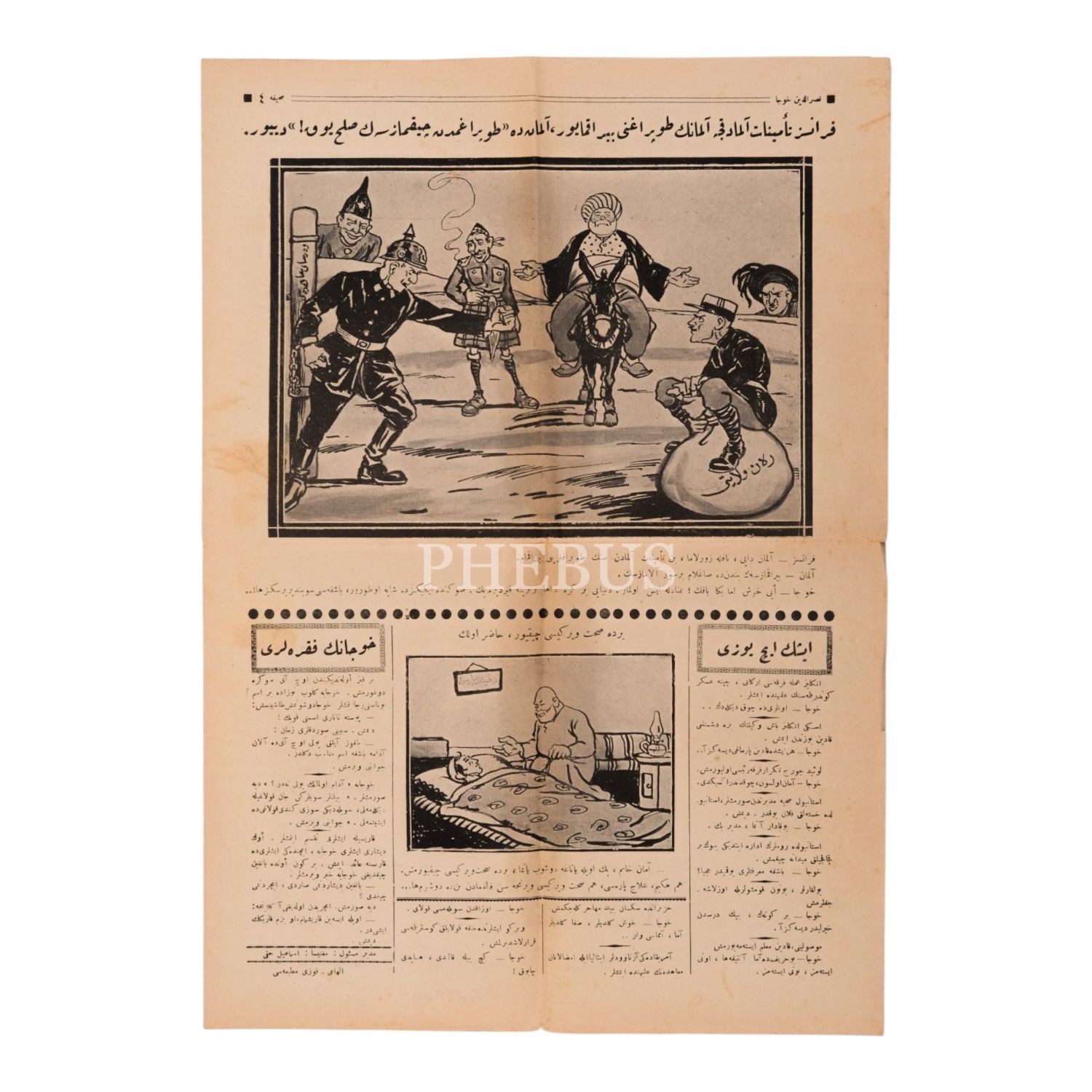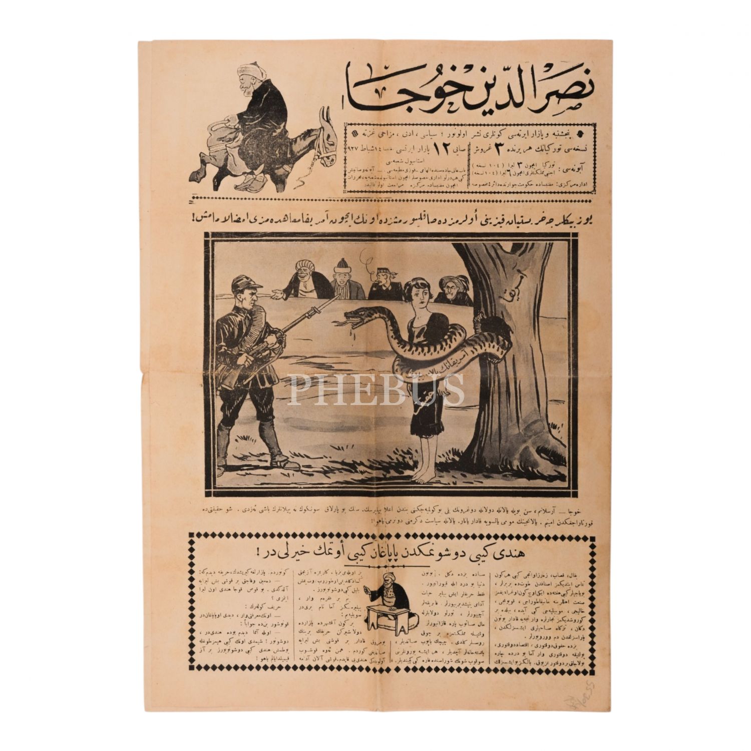 "Yüzbinlerce Hristiyan kızını evlerimizde saklıyormuşuz da onun için Amerika muahedemizi imzalamamış!" manşetli NASREDDİN HOCA dergisinin 14 Şubat 1927 tarihli 12. sayısı, 29x41 cm...