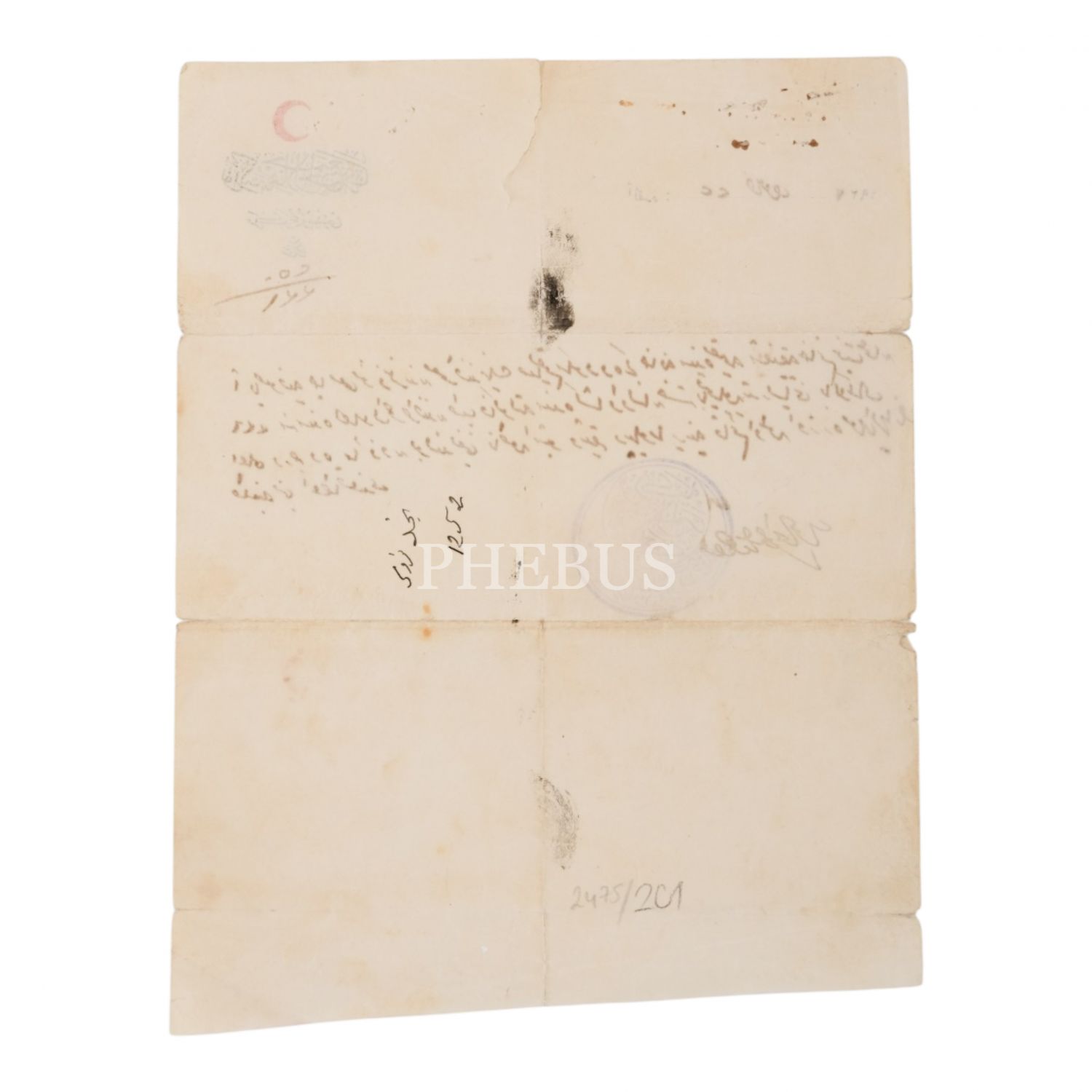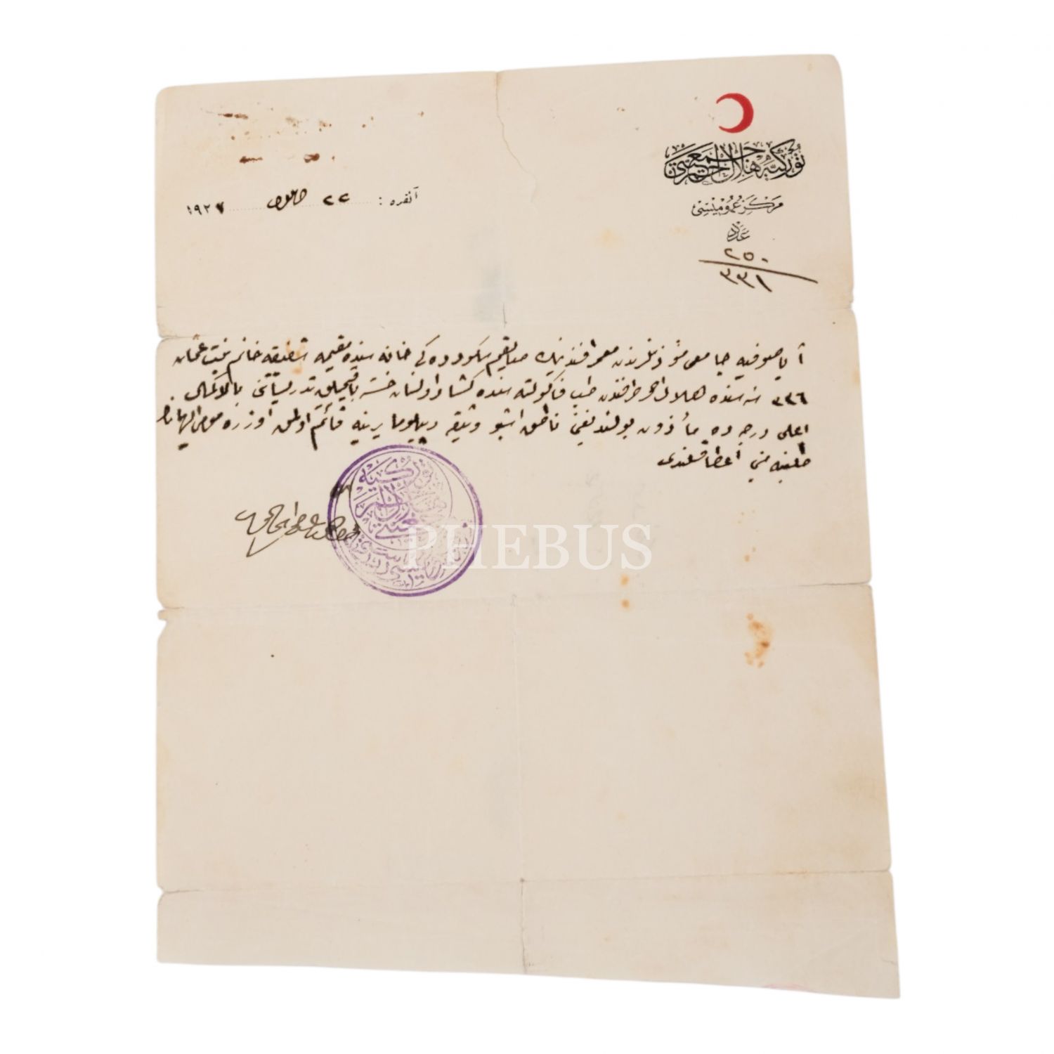 Ayasofya Cami Müezzinleri´nden Muammer Efendi´nin hanesinde ikamet eden Şefika Hanım´ın Hilal Ahmer tarafından Tıp Fakültesi´nde açılan hasta bakıcılık bölümünden mezun olduğuna dair kaleme alınmış, Hilal- Ahmer Cemiyeti antetli evrak, 18x23 cm...