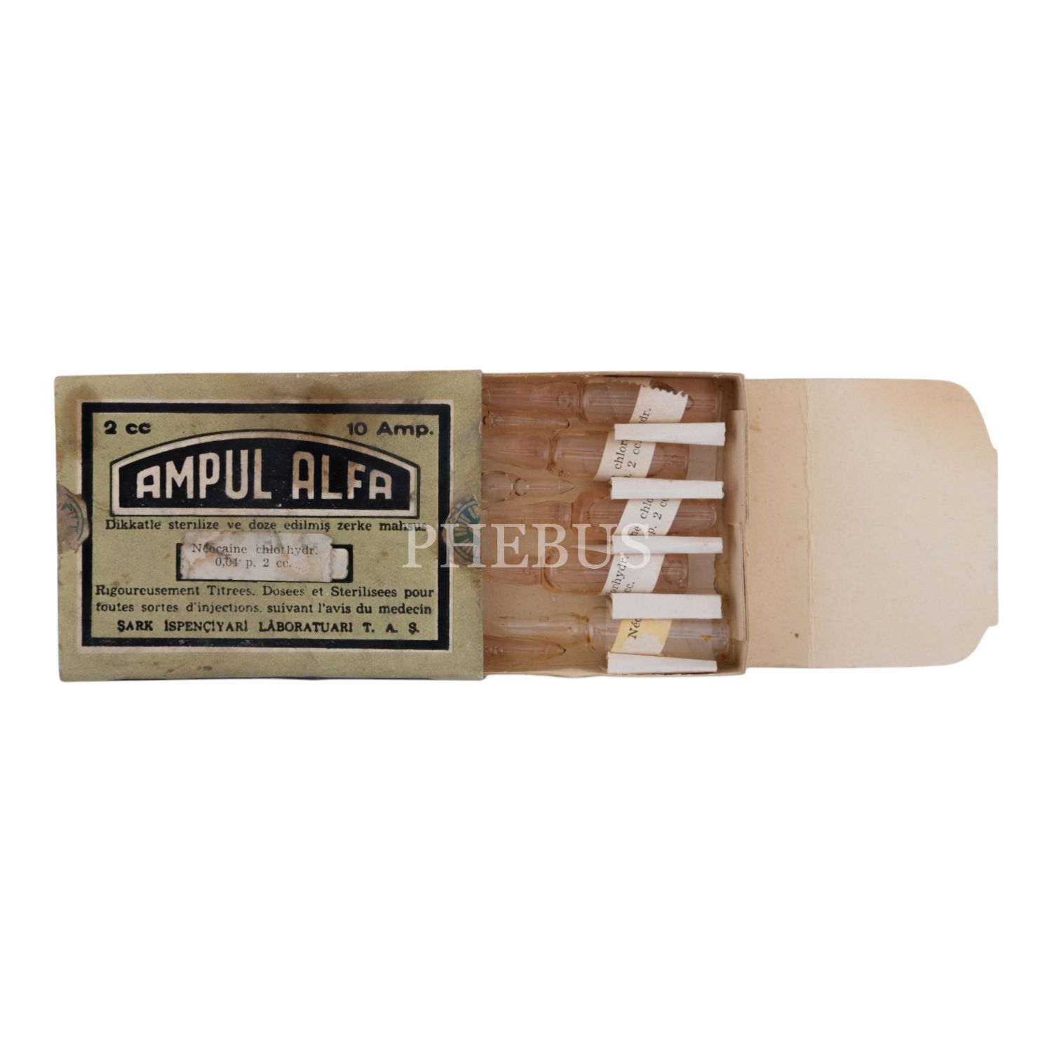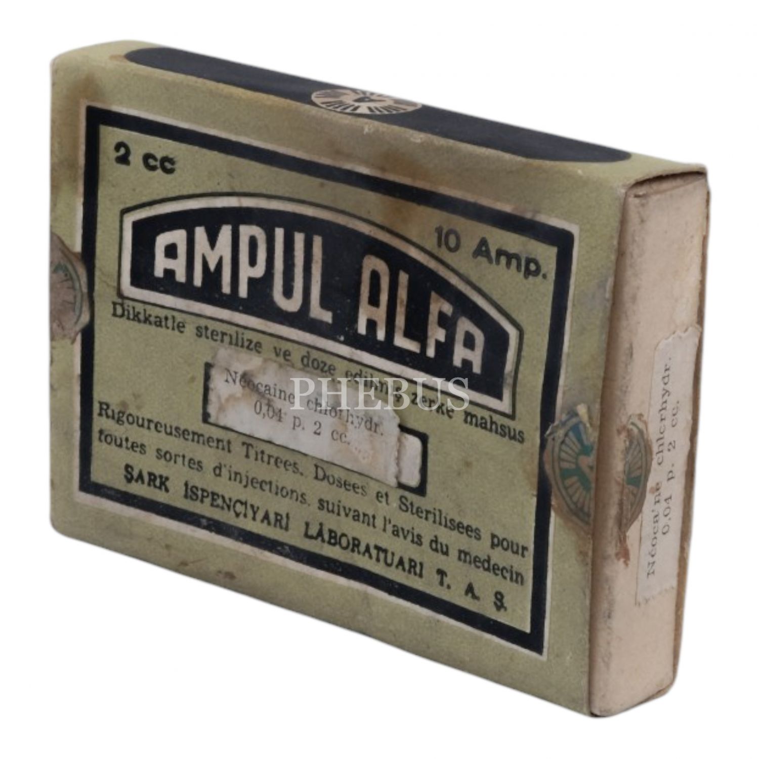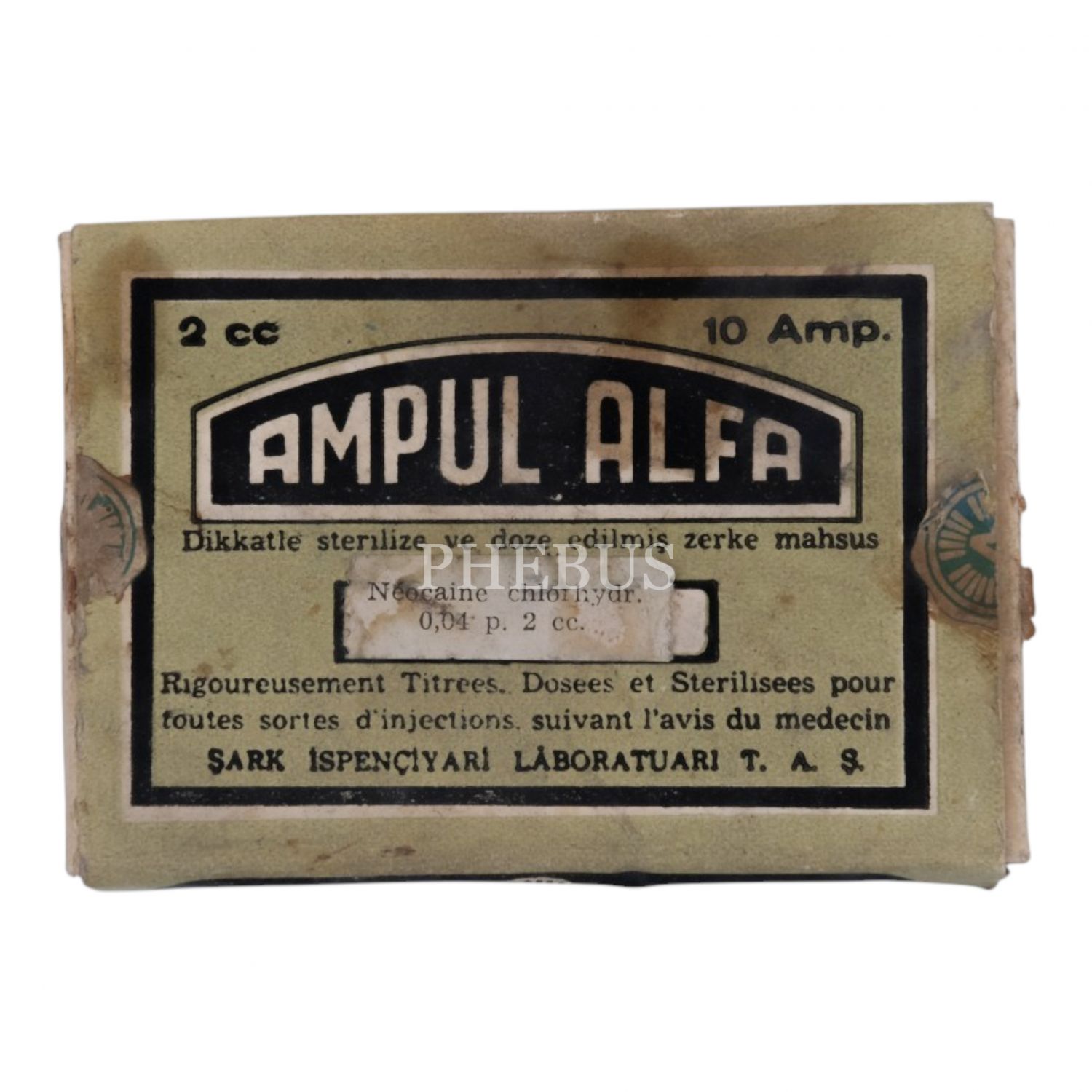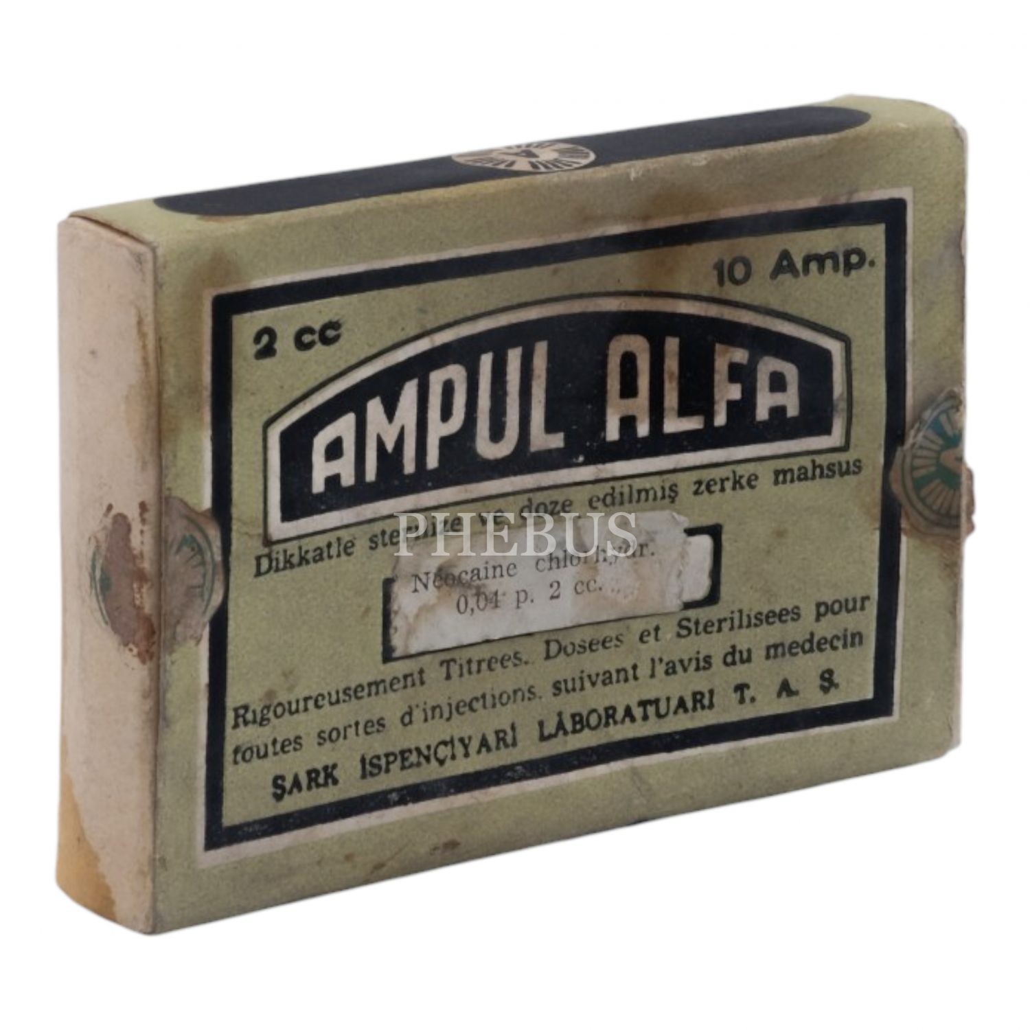 Ampul Alfa kutusu (dolu), Türkçe ve Fransızca yazılı, Şark İspençiyari Lâboratuarı T.A.Ş.,10,5x7x1,5 cm...