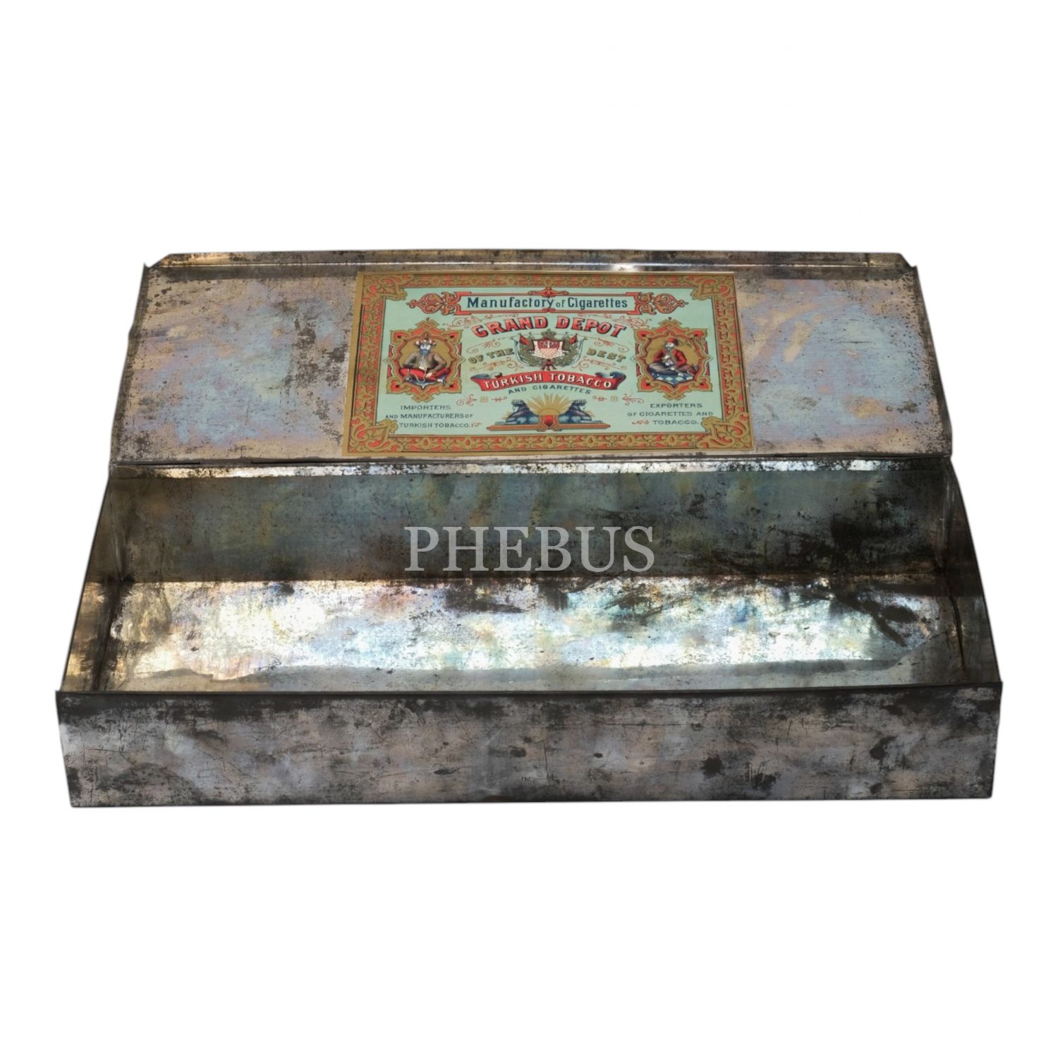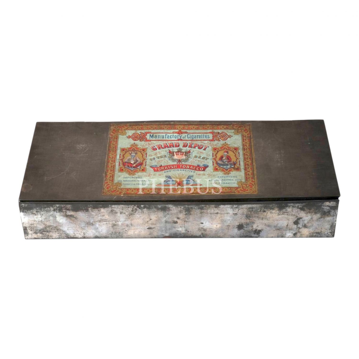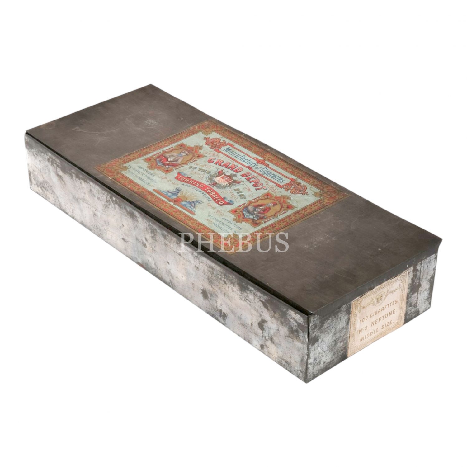 19. yüzyıl sonu - 20. yüzyıl başında faaliyet gösteren Mısır merkezli ünlü tütün firması Kyriazi Freres (Kyriazi Brothers) tarafından üretilen "Neptune" (Neptün) sigarasının, 100 sigaralık kallavi boy metal kutusu, 37x15x6,5 cm...