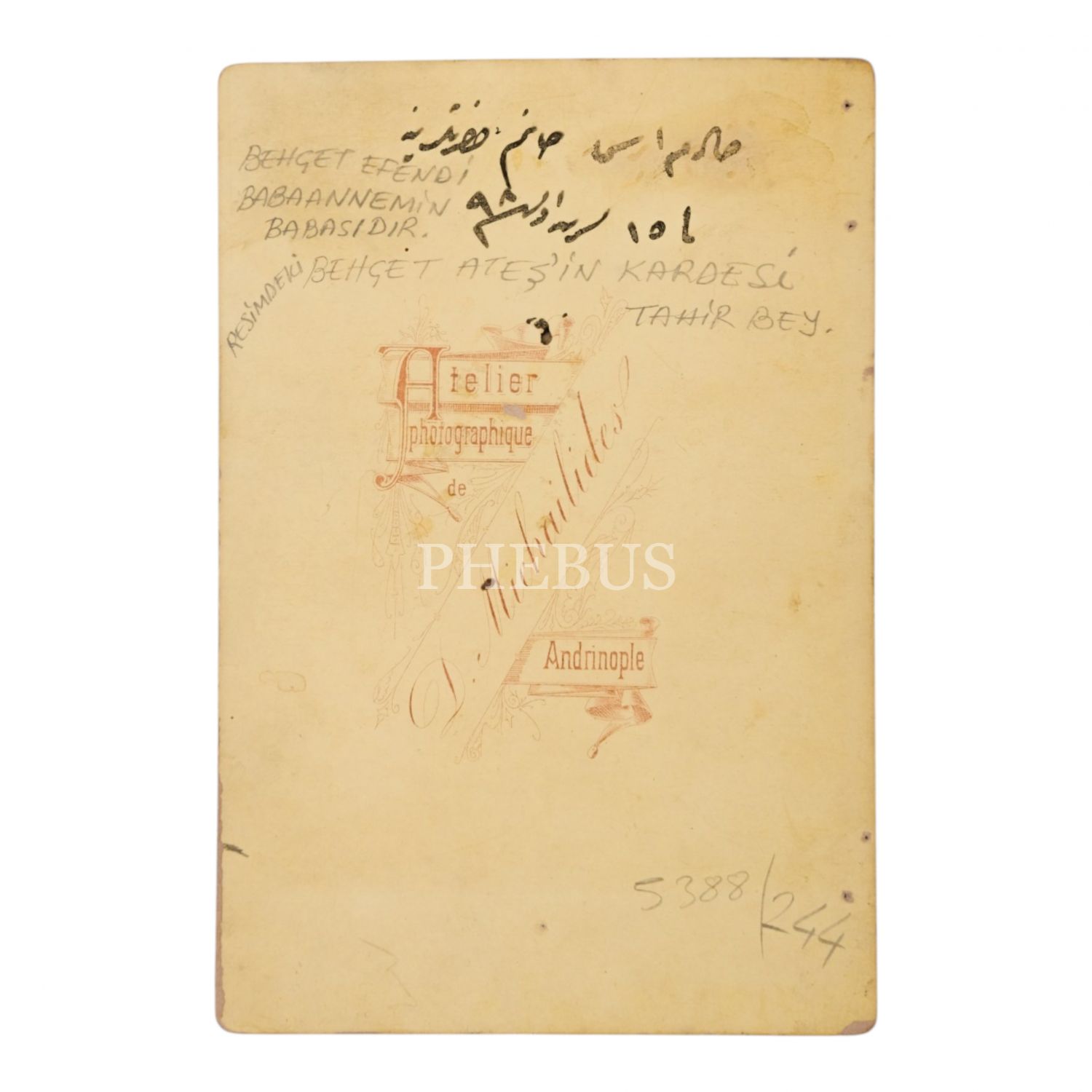 Şık giyimli bir Osmanlı´nın, D. Michailides Fotoğrafhanesi´nde (Edirne) çektirdiği hatıra fotoğrafı, 11x17 cm...
