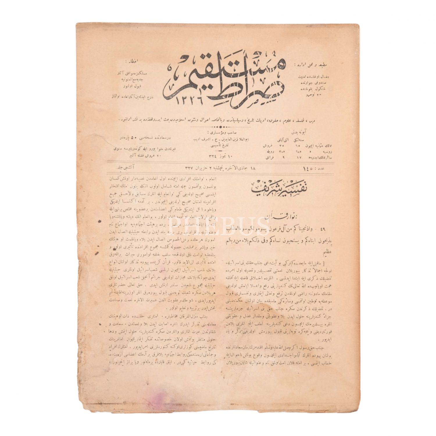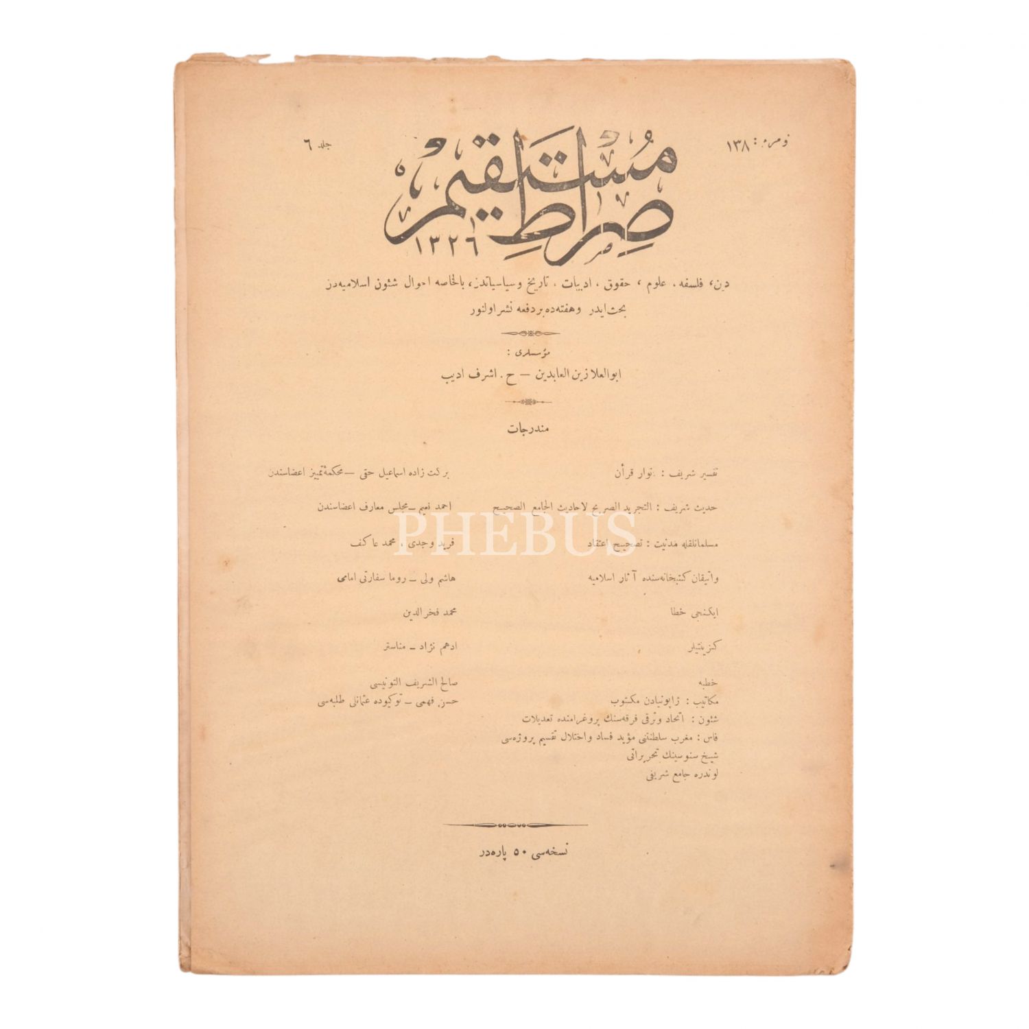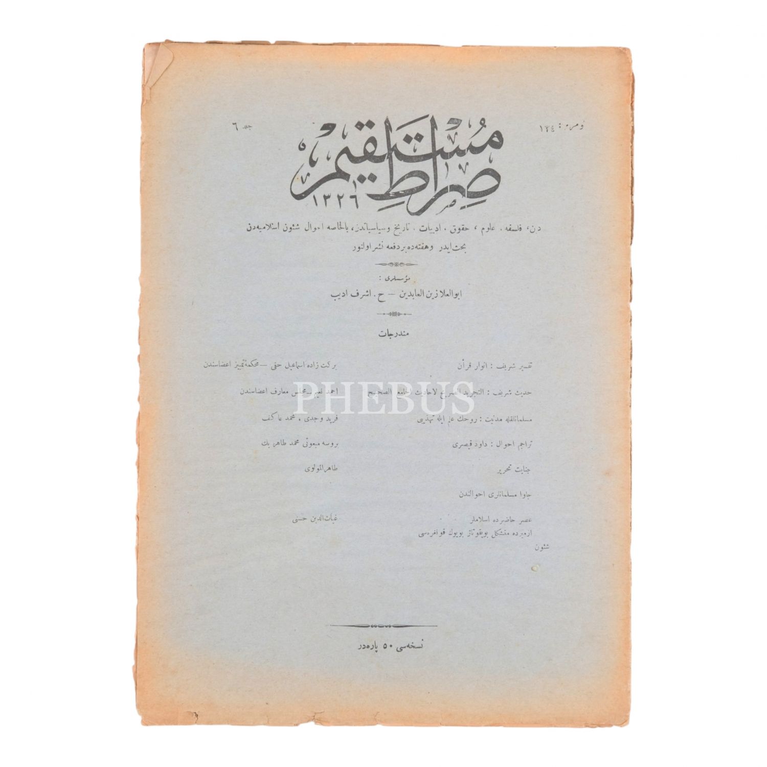 SIRAT-I MÜSTAKİM´in 1336 senesinde yayımlanan, 134, 136, 137, 138, 139, 141, 142, 143, 144, 145, 146, 147, 148, 149, 151, 152, 154. sayıları...
