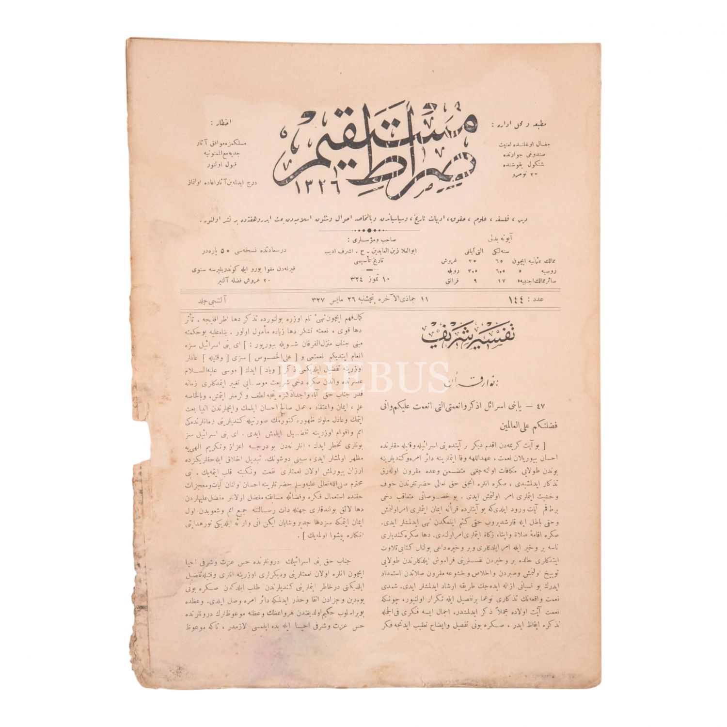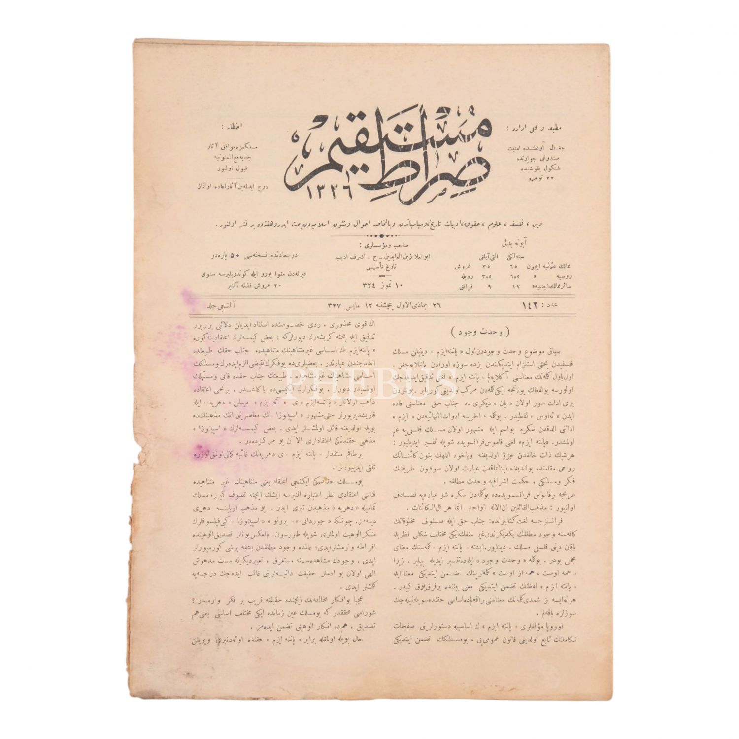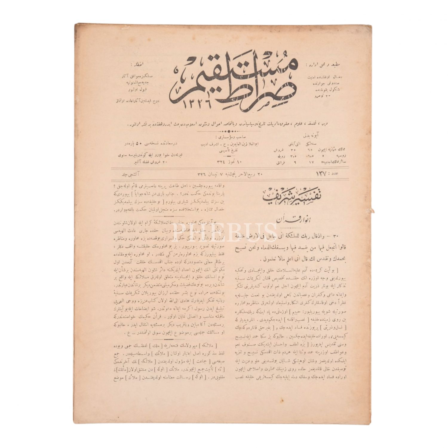 SIRAT-I MÜSTAKİM´in 1336 senesinde yayımlanan, 134, 136, 137, 138, 139, 141, 142, 143, 144, 145, 146, 147, 148, 149, 151, 152, 154. sayıları...