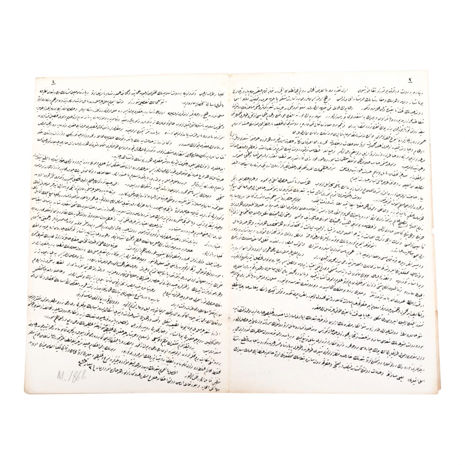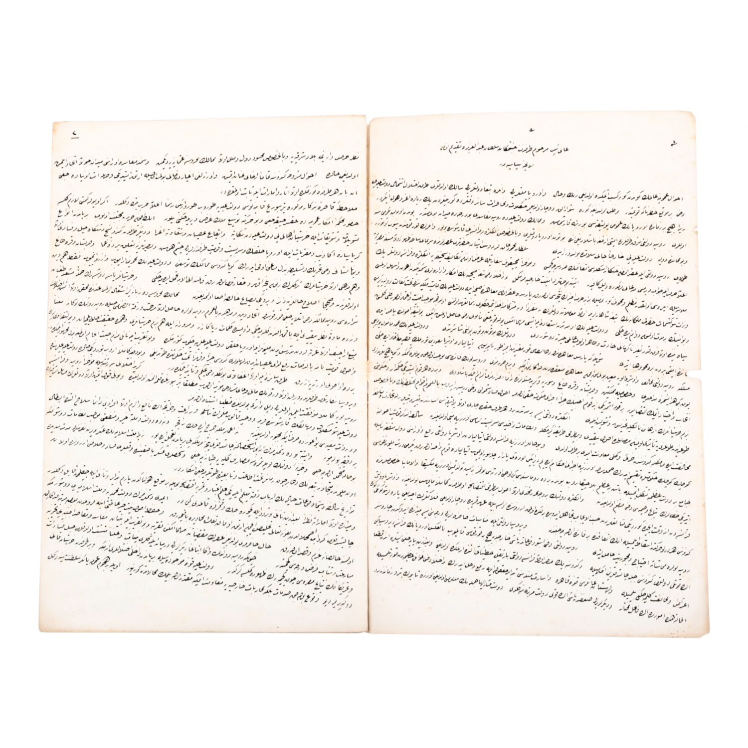 "Ali Paşa Merhum Tarafından Cennetmekan Sultan Abdülaziz´e Takdim Olunan Layiha-yı Siyasiyedir" başlığıyla, Tanzimat Fermanı´nın altında imzası bulunan sadrazam Mehmet Emin Ali Paşa´nın vefatından hemen önce Sultan Abdülaziz´e sunduğu, Osmanlı İmparatorluğu´nun son dönemlerindeki iç ve dış sorunları ele alan, devletin varlığını sürdürebilmesi için yapılması gereken reformları içeren oldukça siyasi vasiyetnamesinin el yazısıyla kaleme alınmış sureti, 4 sayfa, 21x33 cm...