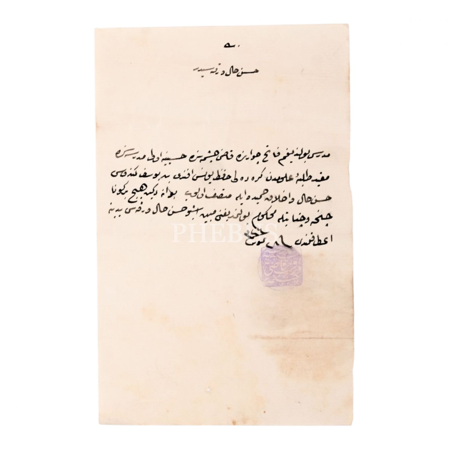 Fatih Kadıçeşmesi´ndeki medresede eğitim gören Hafız Yunus Efendi adına verilen hüsn-i hal varakası, 1326, 14x21 cm...
