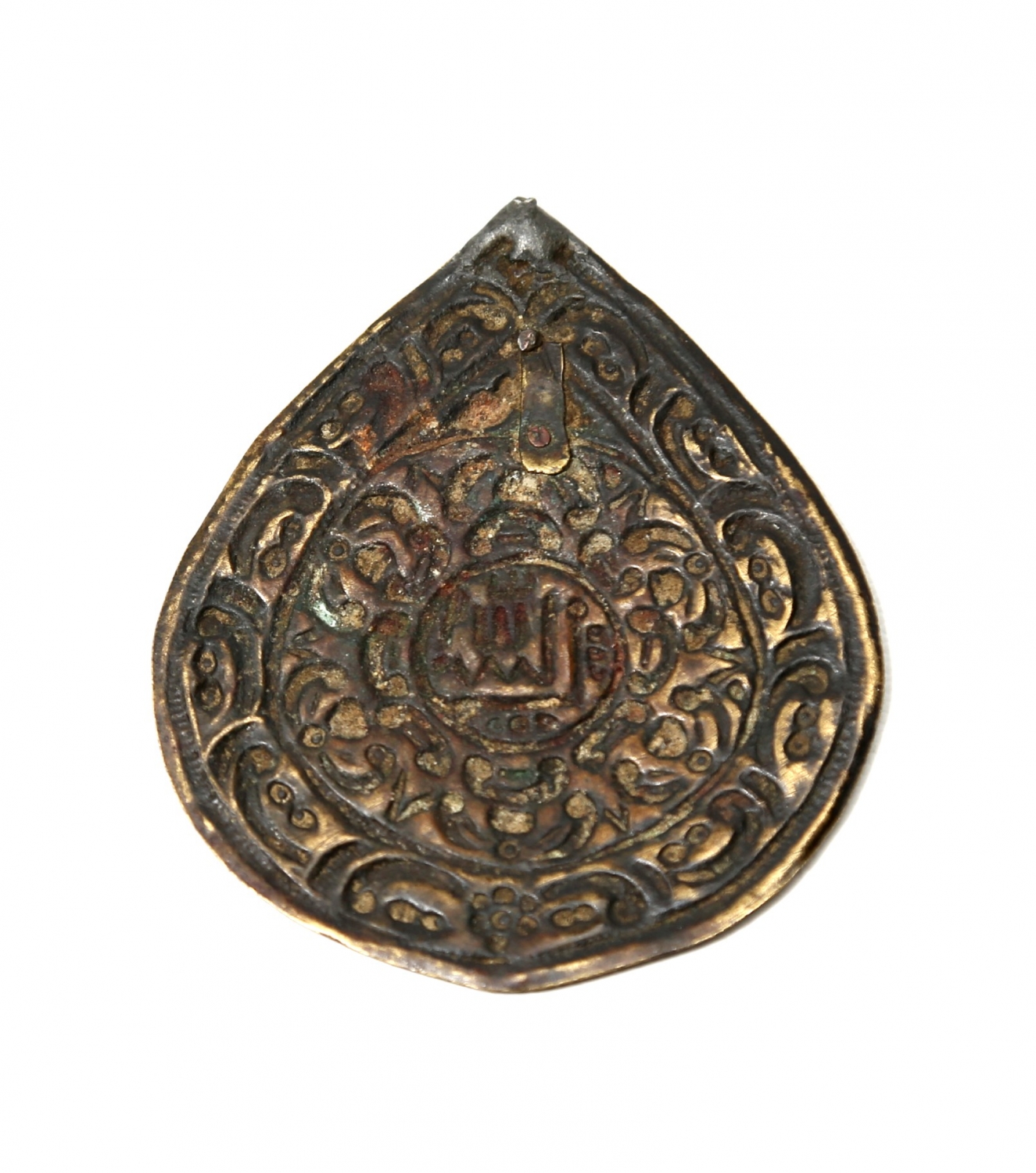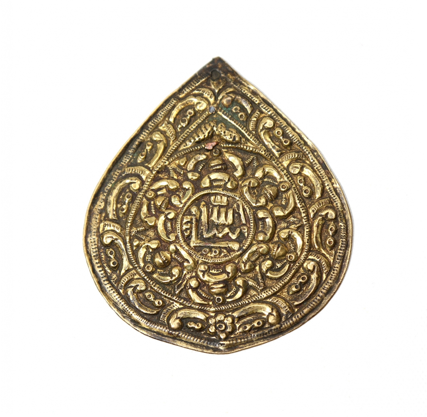 Osmanlı dönemi üzeri altın vermeyli 'Maşallah' yazılı tılsım, 7,5x6,5 cm.