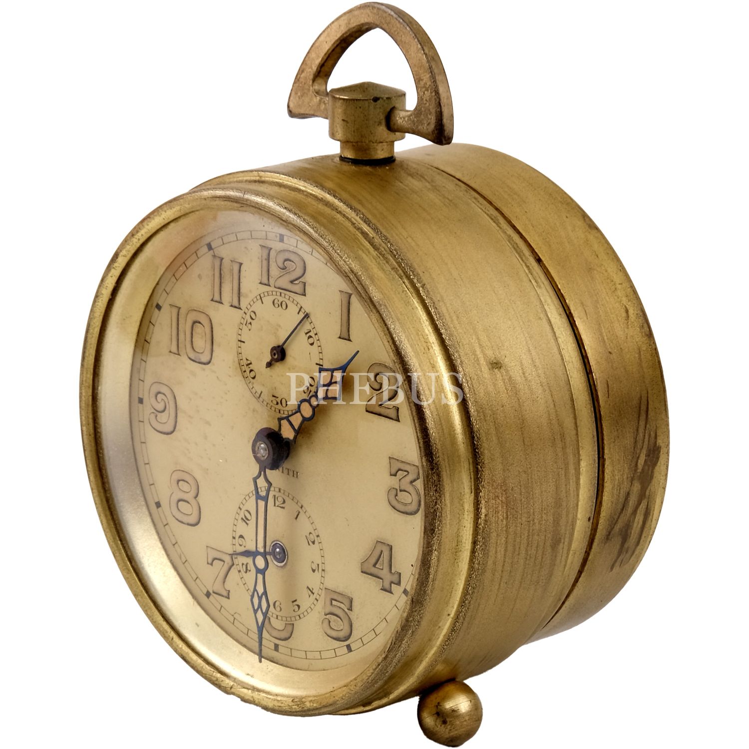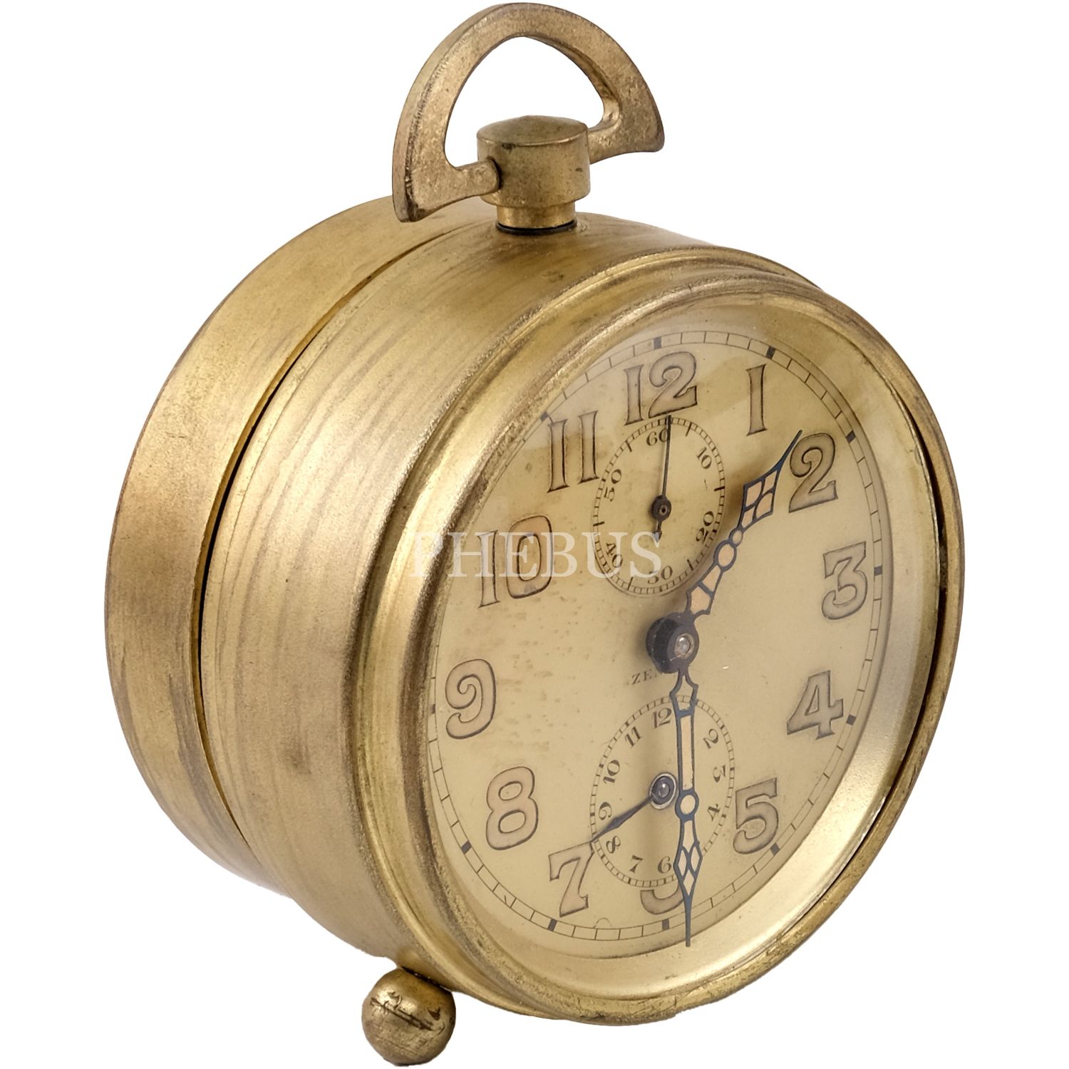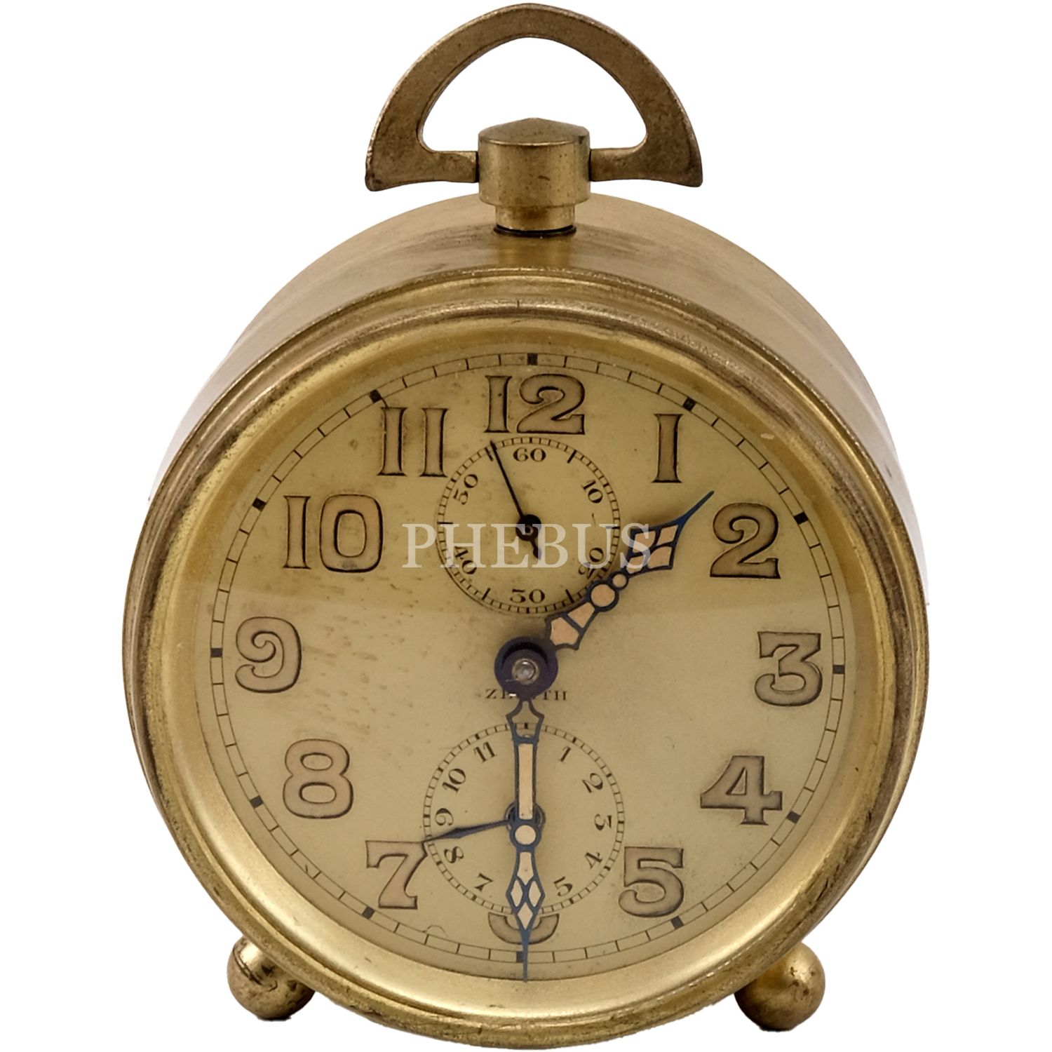 Zenith Pirinçten mamül, 20.yy başlarında üretilmiş özel ahşap kutusunda kurmalı çalar masa saati...