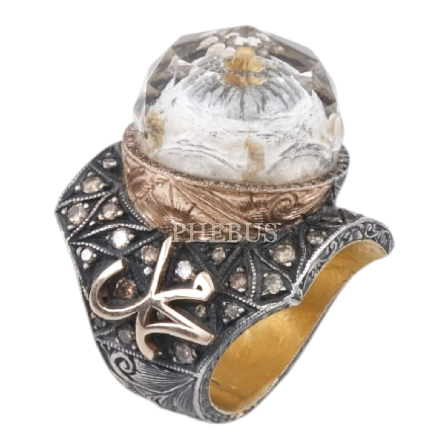 Sevan Bıçakçı'nın yanında yetişmiş ustalardan Murat Keskin tarafından yapılmış kenarlarında Allah ve Muhammed yazılı gümüş ve paladyum karışımlı özel tasarım el yapımı yüzük...