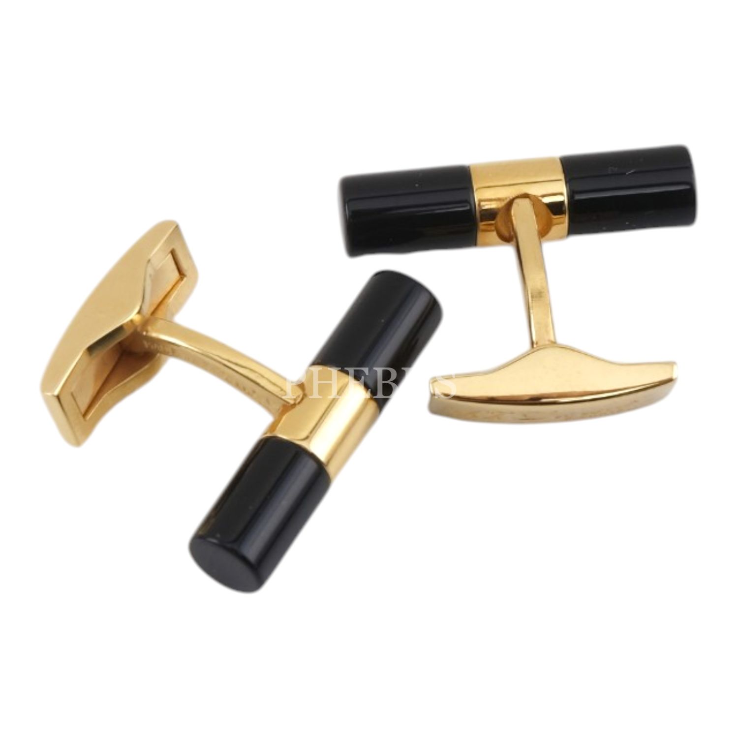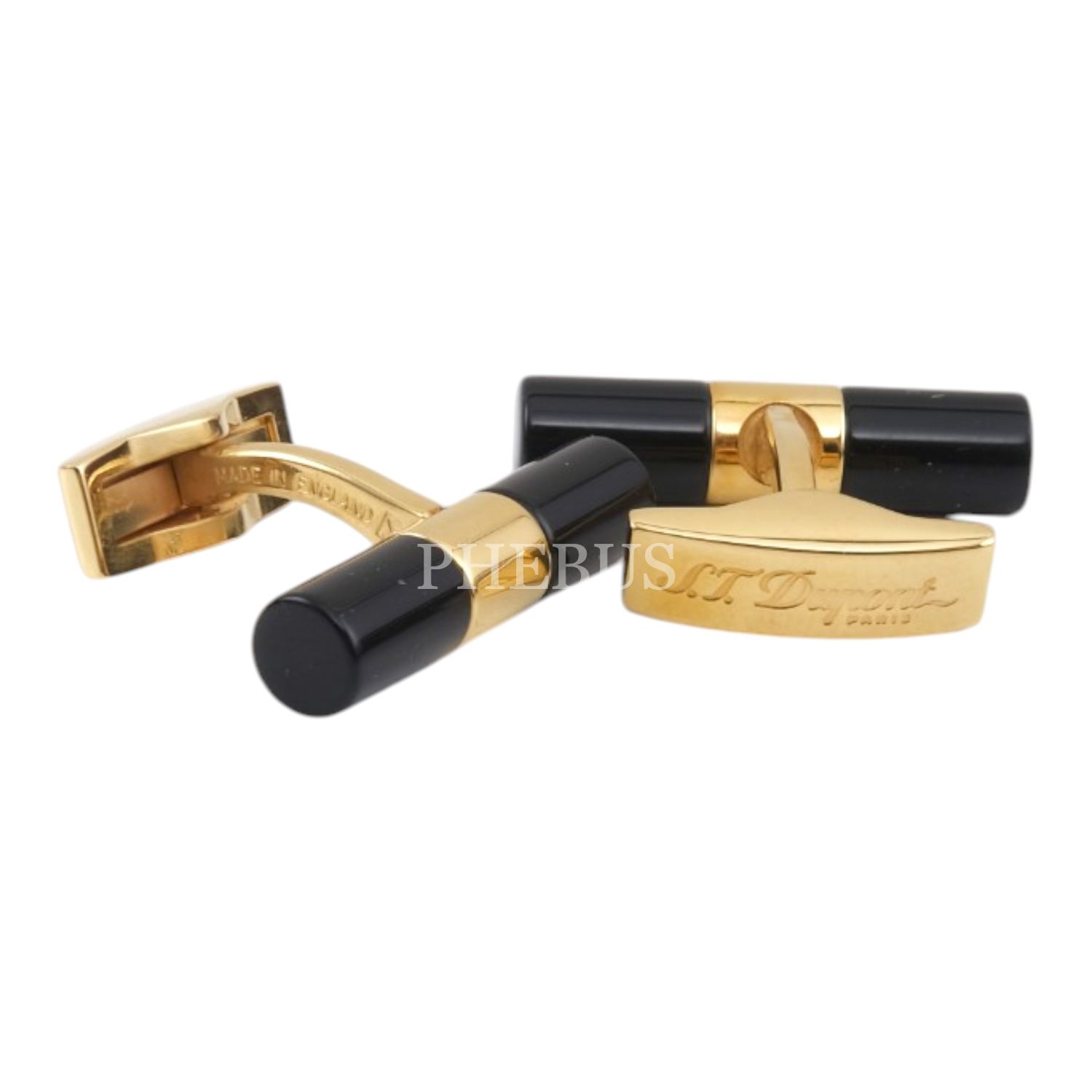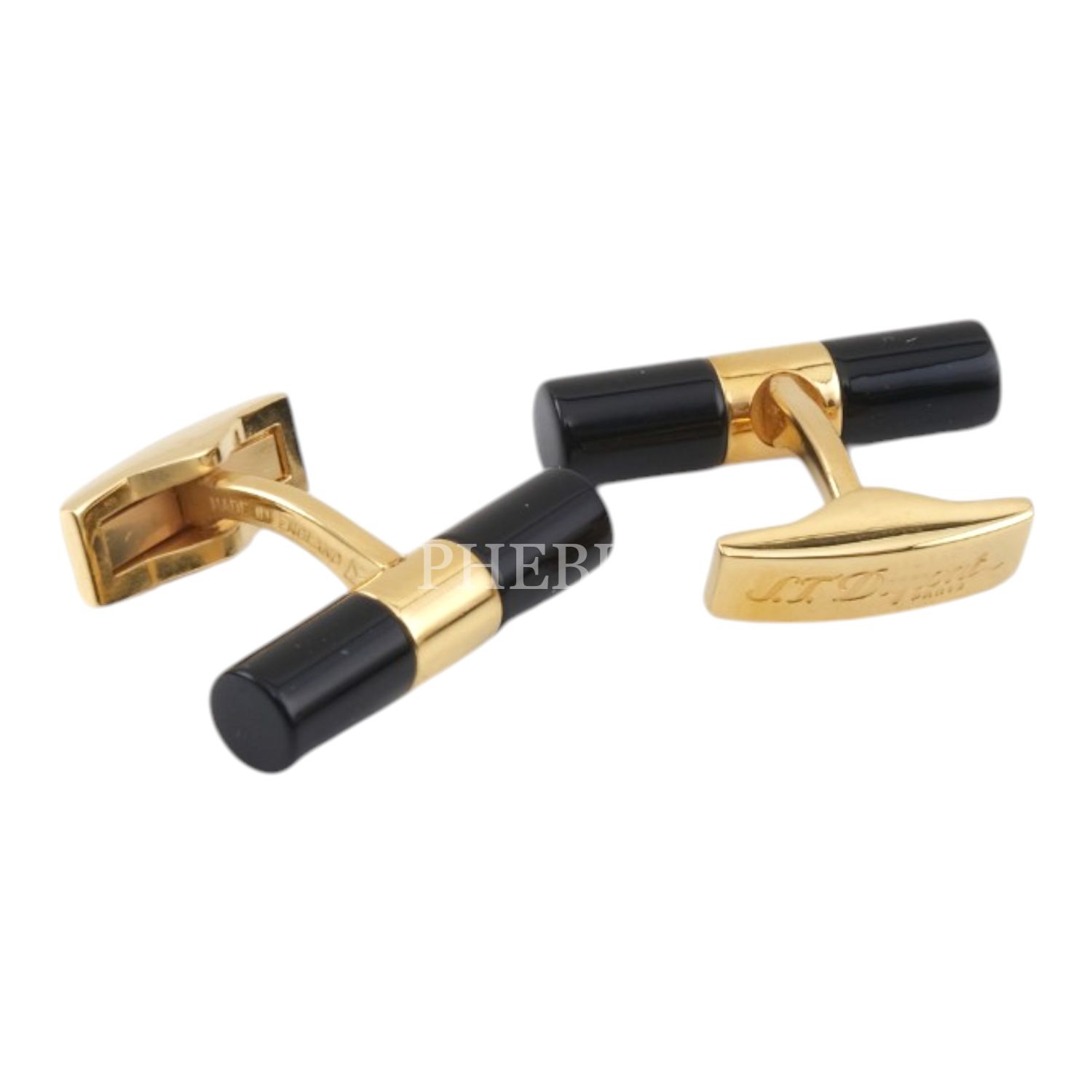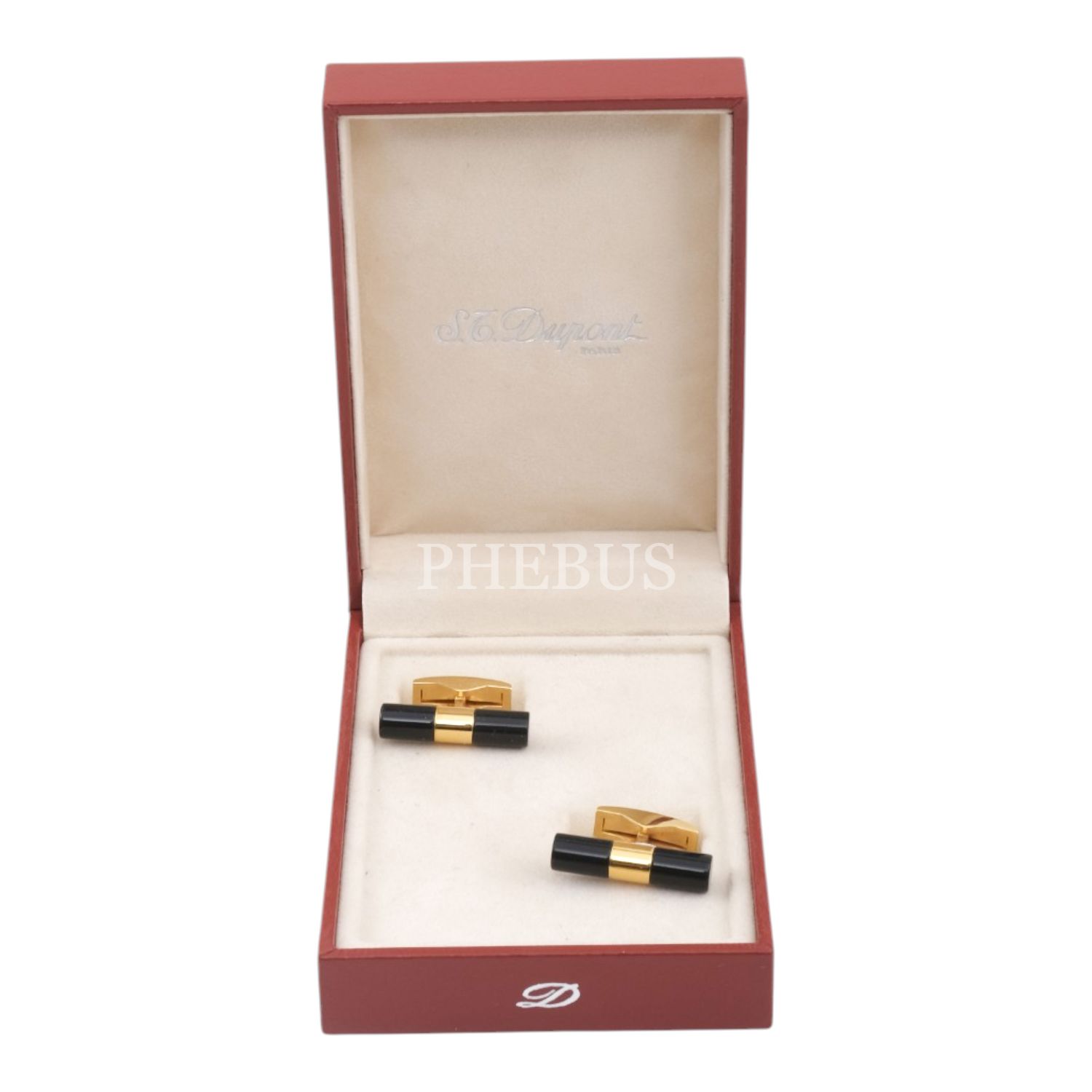 S.T. Dupont oniks taşlı, altın kaplama orijinal kutusunda tam set bir çift kol düğmesi...