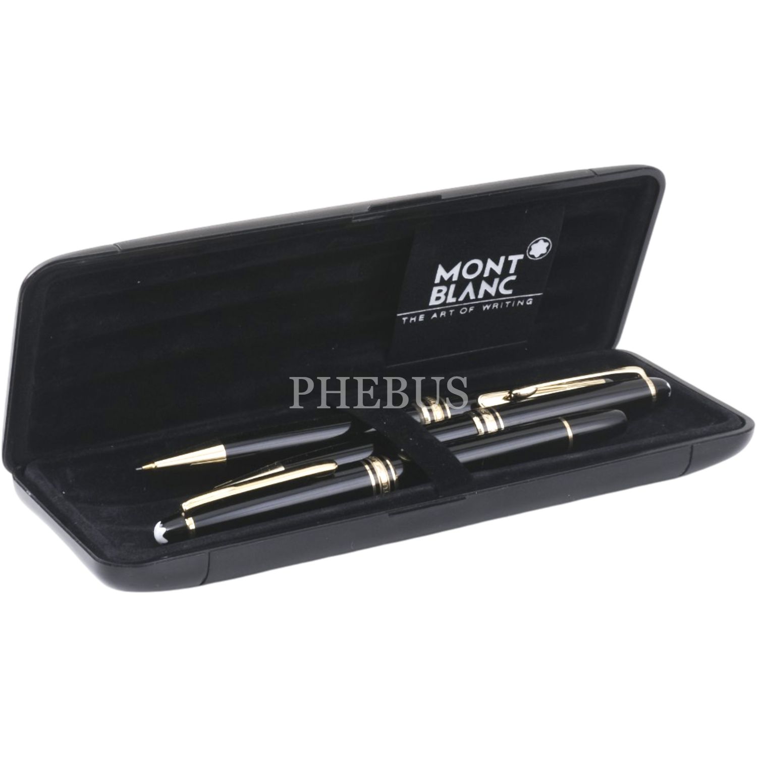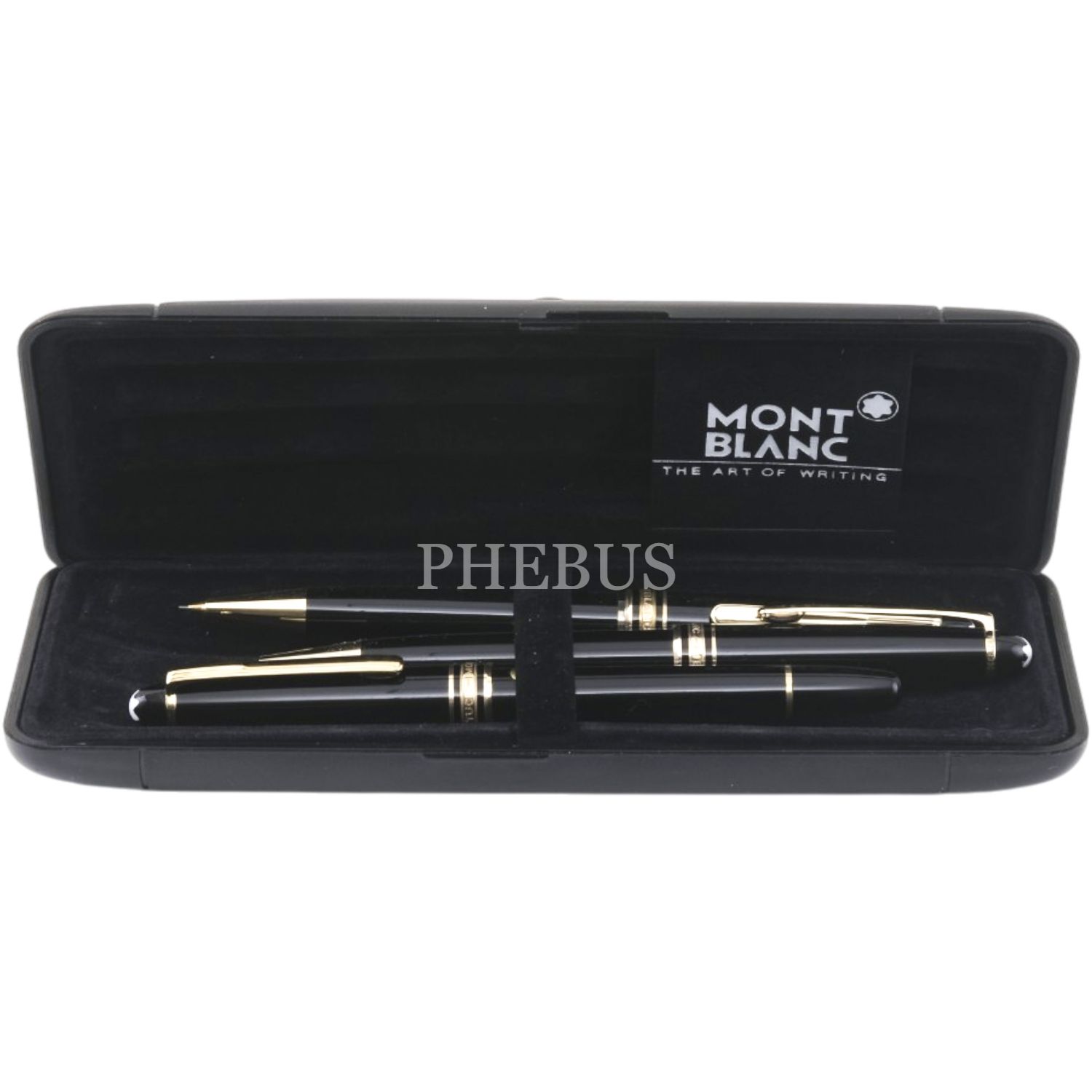 Montblanc Meisterstück M uçlu dolma kalem, tükenmez kalem ve versatil kalemden oluşan orijinal kutusunda 3´lü kalem seti...