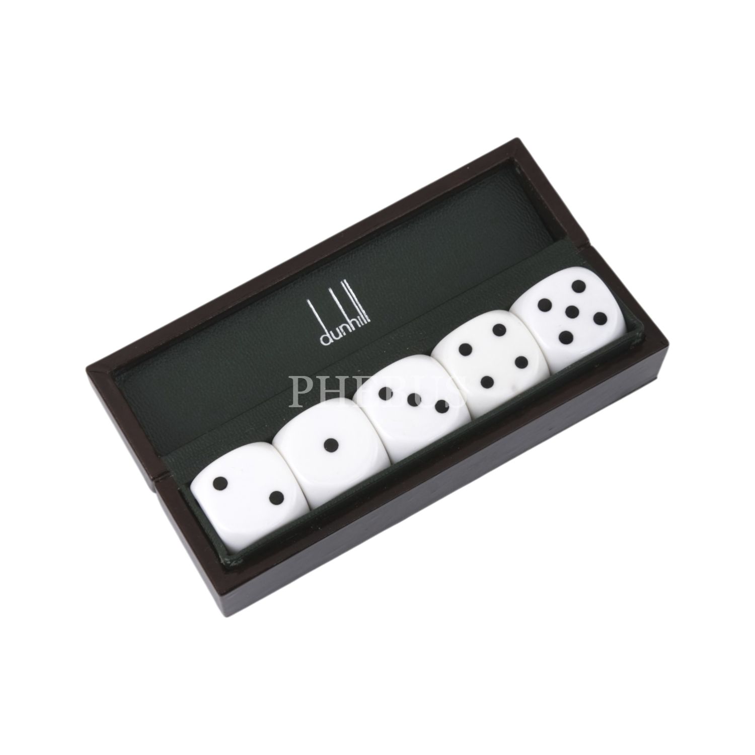 Dunhill, keçe astarlı ahşap görünümlü özel sunum kutusunda 5 adet zar seti...