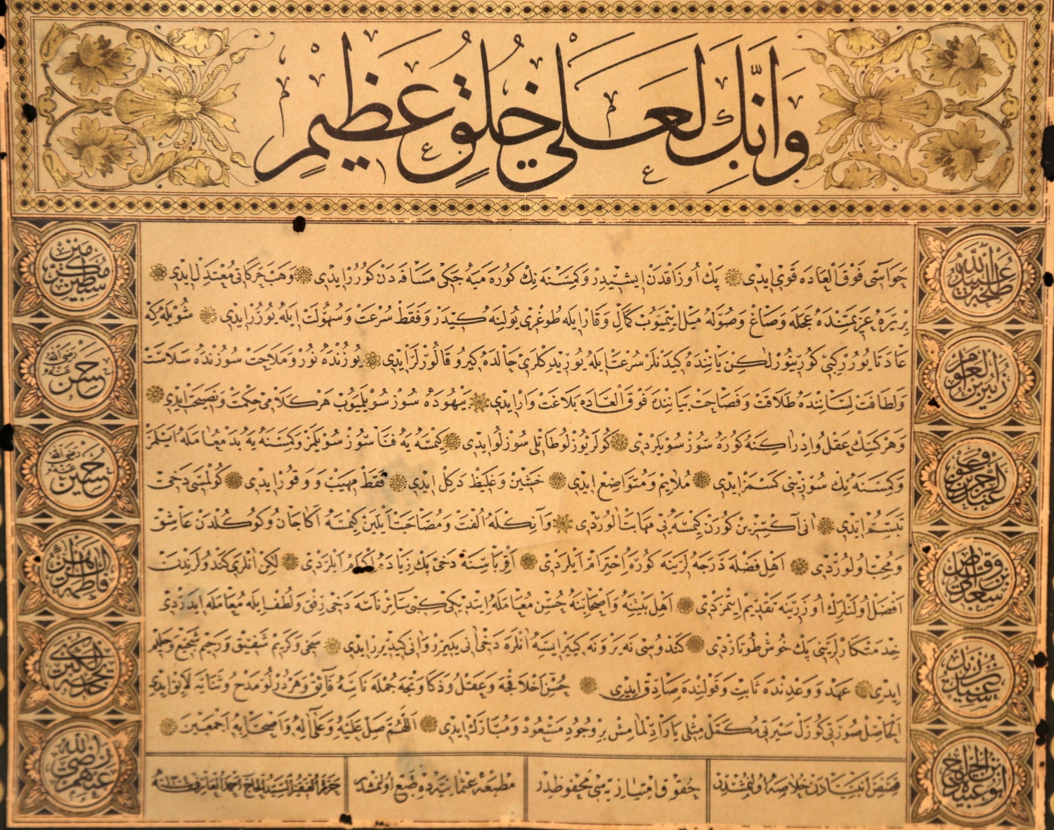 Taş Baskı Sülüs Nesih Hilye-i Şerif, Bakkal Arif Efendi ketebeli, çerçeveli, çerçevesi haliyle, 27x49 cm.
