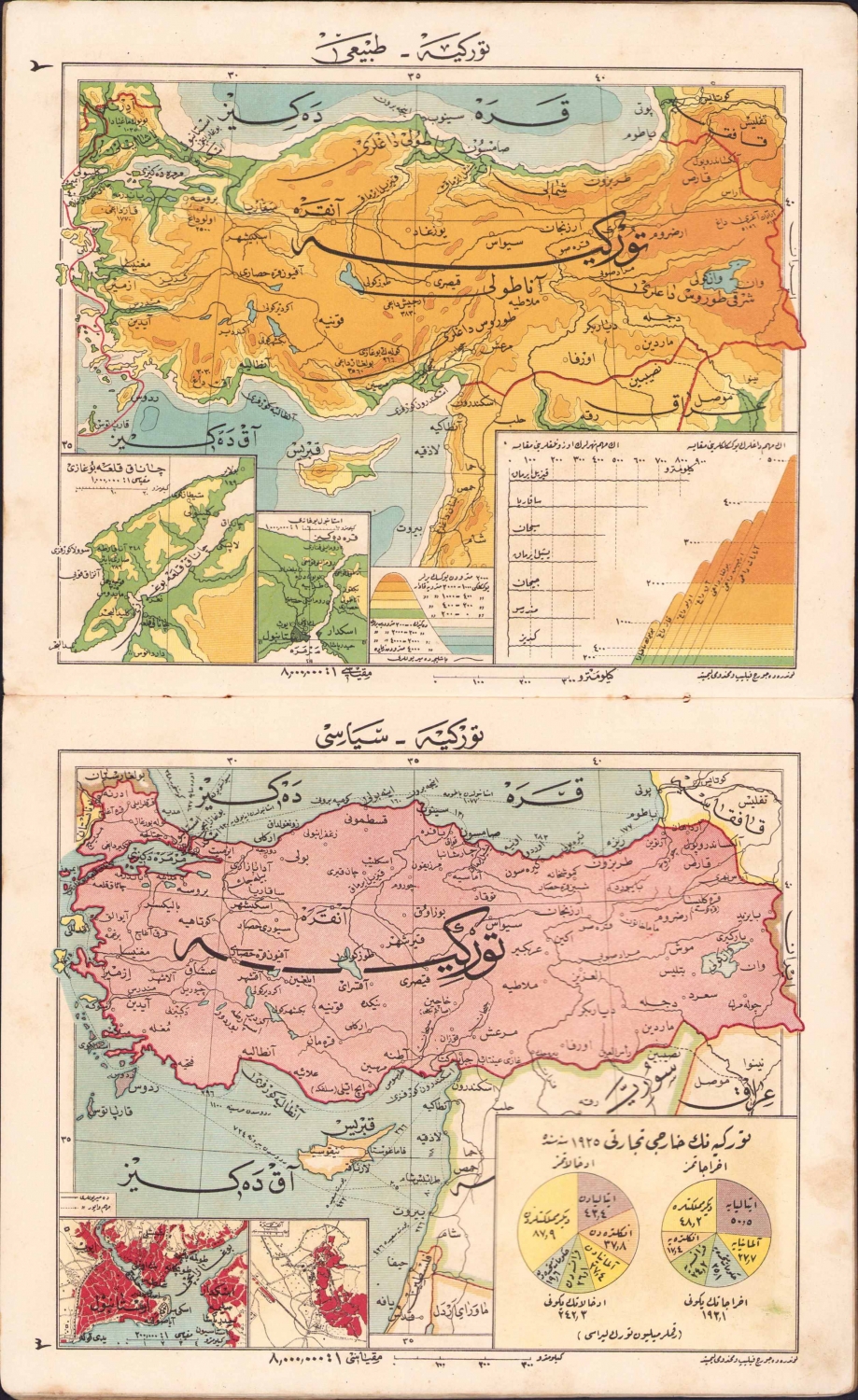 İlk Atlas, İlk Mekteblere Mahsus, Müderris Faik Sabri, Birinci Tab'ı, 1927 tarihli, Kanaat Kitabhanesi, İstanbul, 16 sayfa, 19,5x24 cm.