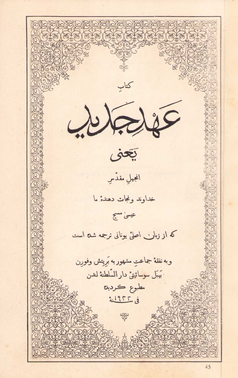 Farsça Kitab-ı Ahd-ı Cedid Yani İncil-i Mukaddes Hüdavend ve Necat-ı İsa-i Mesih, Yunani Tercümesinden, İngiliz Bible Şirketi, 1932, 421 sayfa, 11x19 cm