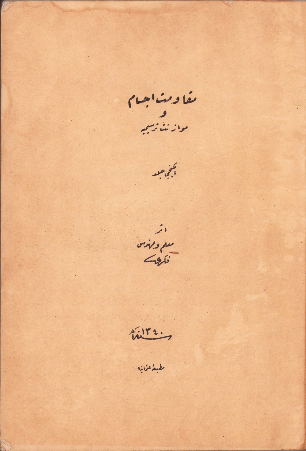 Osmanlıca Mukavemet-i Ecsam - ikinci cilt, Muallim ve Mühendis Mehmed Fikri, Türkiye Cumhuriyeti Nafia Vekaleti Mühendis Mektebi Kütüphanesi:3, Matbaa-i Osmani, 1341, şekilli, sırtı haliyle, 429, 20x26 cm sayfa,