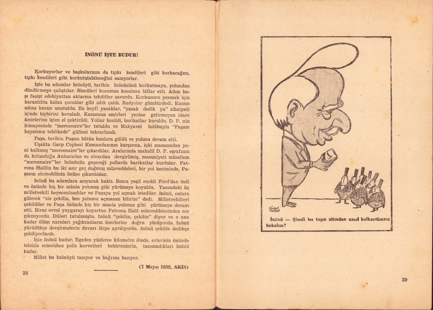 İnönü'ye Atılan Taş ve Akisleri, C. H. P. Yayınları, Rüzgarlı Matbaa, Ankara, 1959, 40 sayfa, 16x24 cm