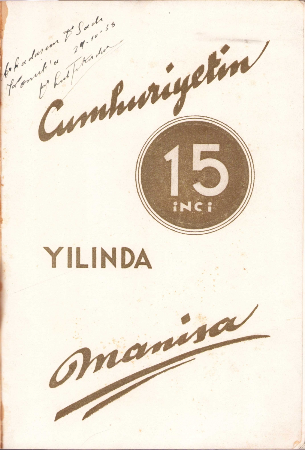 Cumhuriyetin 15 inci Yılında Manisa, Kemal Matbaası, İstanbul, Manisa Valisi Dr. Lütfi Kırdar tarafından ithaflı ve imzalı 1938, 150 sayfa, 20x26 cm