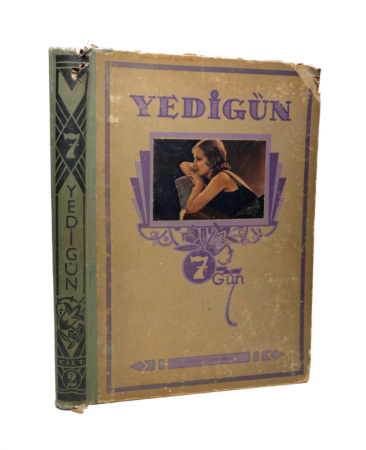 Yedigün mecmuası, 2.cilt, 1933 -1934, müessisi Sedat Simavi, 28 - 52 sayıları bir arada, cilt kapağı haliyle, 23x33 cm