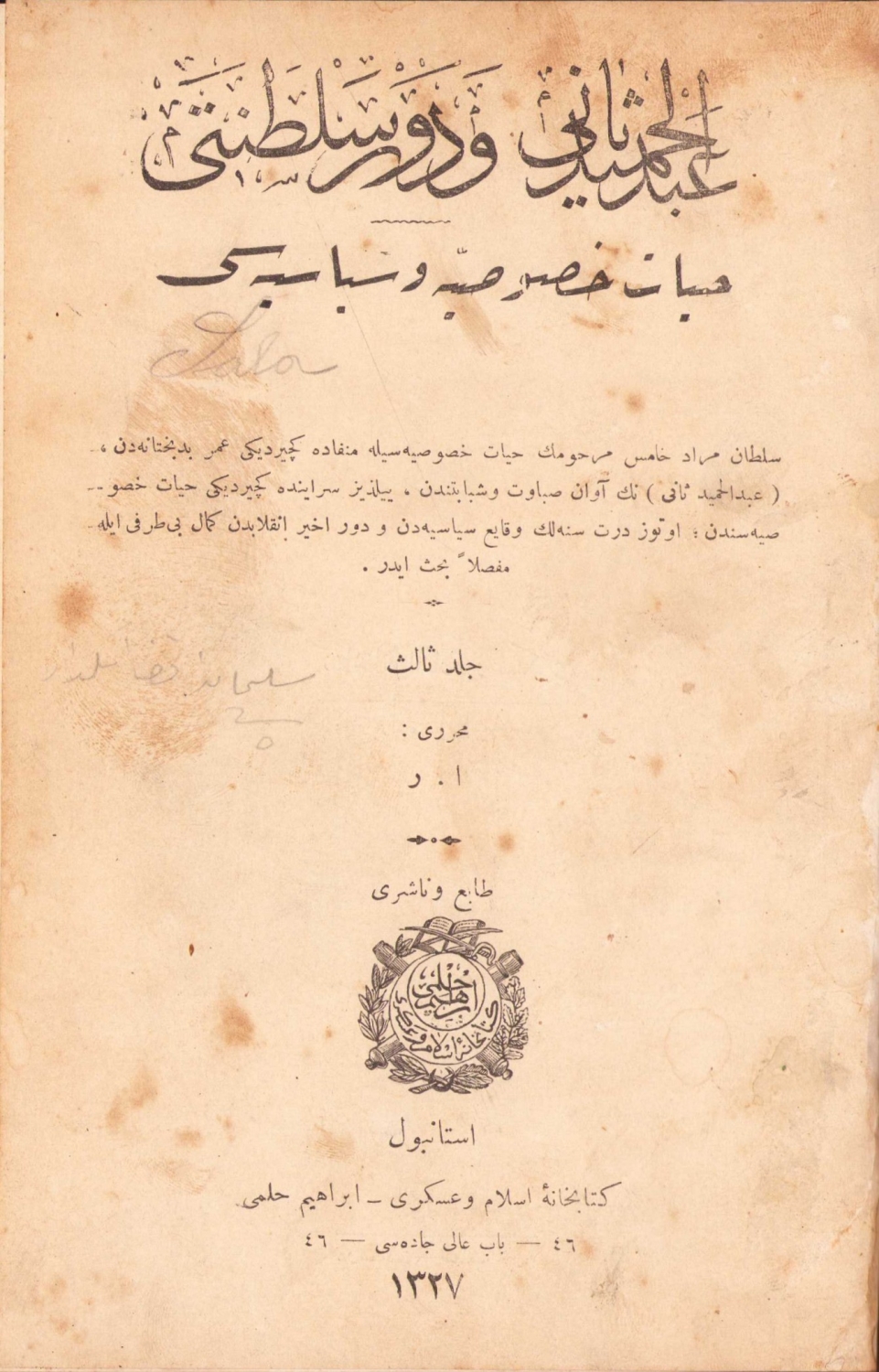 Osmanlıca Abdülhamid-i Sani ve Devr-i Saltanatı Hayat-ı Siyasiyesi ve Hususiyesi -3. cilt, sman Nuri, Matbaa-i Hayriye, İstanbul, 1327, resimli, 400 sayfa, 14x20 cm, ÖZEGE; 19