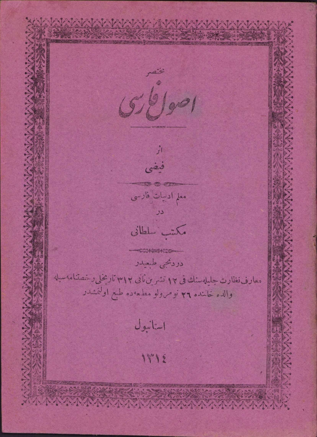 Osmanlıca Osmanlıca Muhtasar Usul-i Farisi, Muallim Feyzi, dördüncü baskı, Mehdi Efendi Matbaası, İstanbul, 1314, 45 sayfa, 13x19 cm, ÖZEGE; 14296