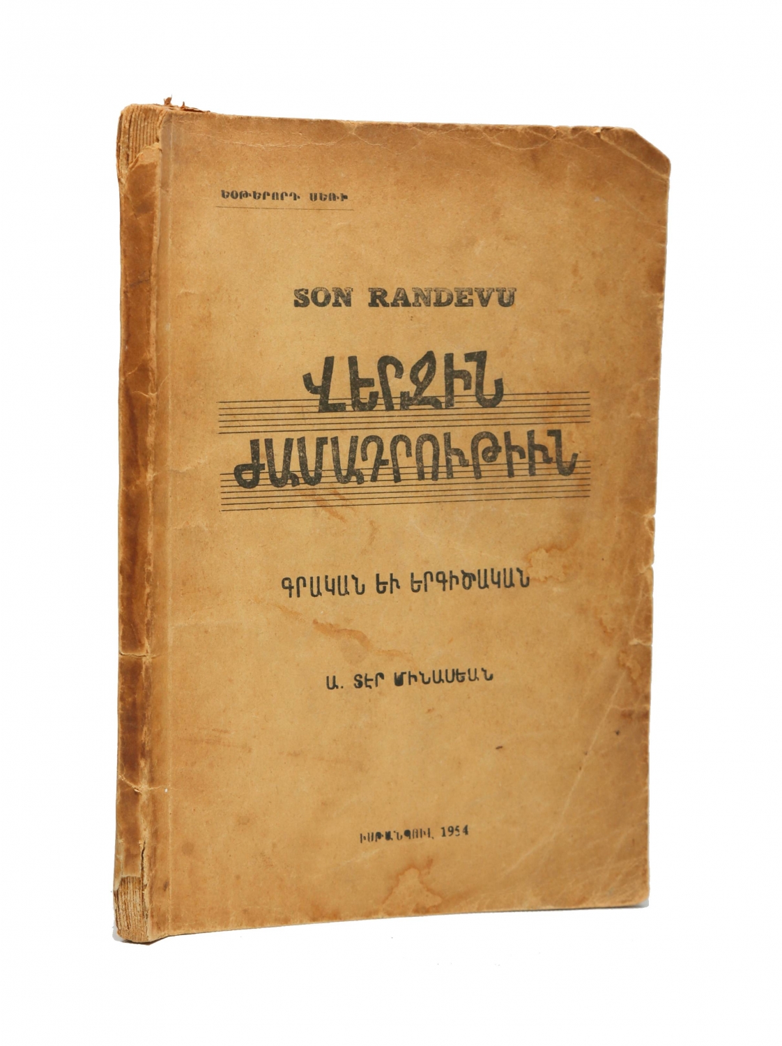 Ermenice kitap, Son Randevu, Herman Matbaası, 1954, sırtı haliyle, 174 sayfa, 14x20 cm